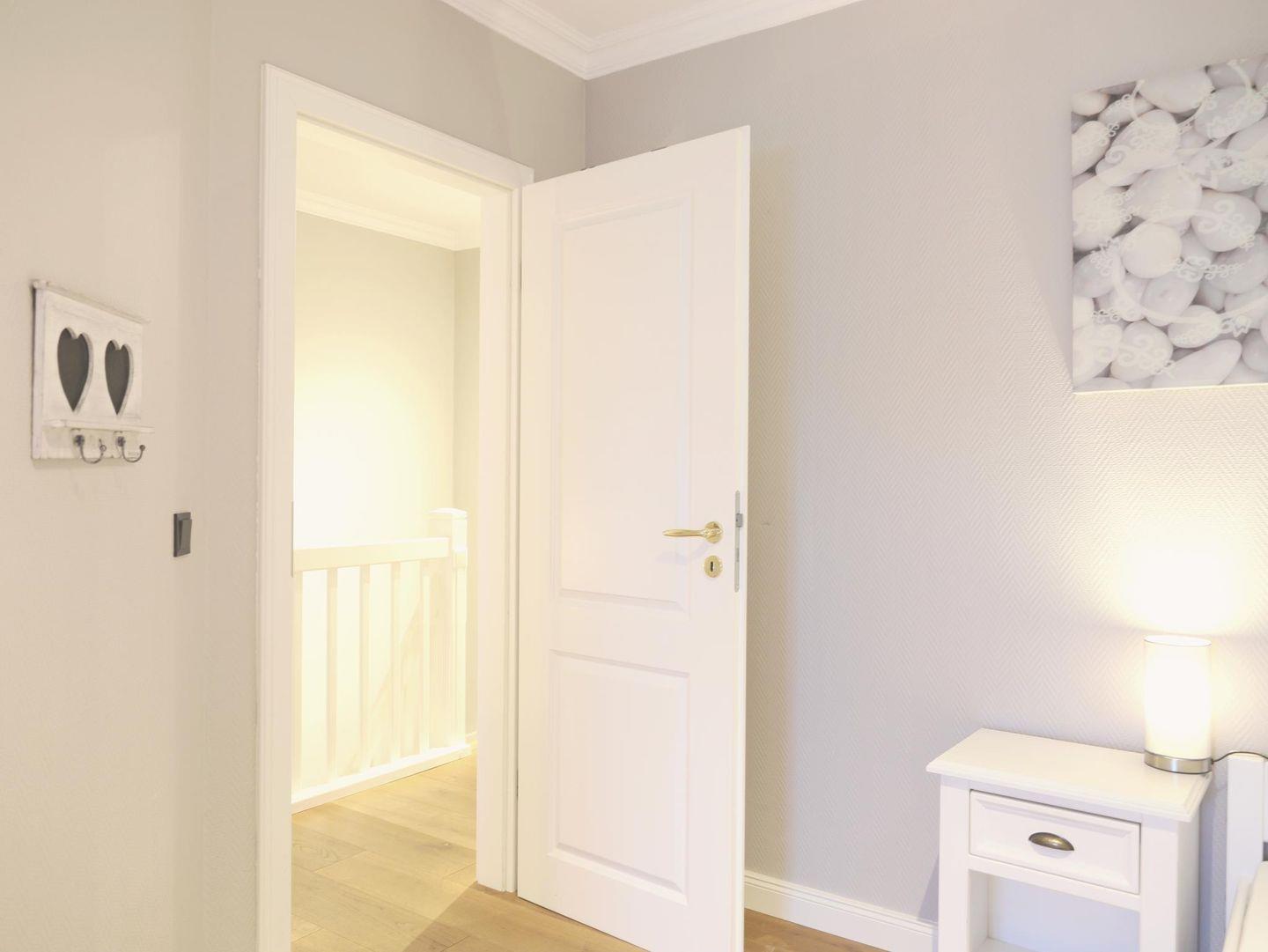 Diese exklusive 3-Zimmer-Ferienwohnung im Herzen von Westerland bietet auf 70 m² Platz für bis zu 5 Personen. Der großzügige Wohn-/Essbereich ist mit einer bequemen Wohnlandschaft, einem Flat Screen TV und einer HiFi-Anlage ausgestattet. Die hochwertige Markenküche umfasst einen Induktionsherd, Backofen, Geschirrspüler und Kühlschrank mit Gefrierfach. Das Badezimmer wurde 2021 komplett saniert und verfügt über eine Regenwasserdusche und exklusive Sanitärobjekte. Eine Holztreppe führt ins Obergeschoss, wo sich zwei geräumige Schlafzimmer befinden. Schlafzimmer 1 ist mit einem Doppelbett (180 x 200 cm) ausgestattet, und Schlafzimmer 2 bietet zwei Einzelbetten (90 x 200 cm) sowie ein weiteres Bett (80 x 200 cm). Beide Schlafzimmer verfügen über einen Flat Screen TV. Von der Süd-West-Loggia genießen Sie einen schönen Blick über Westerland und das Hotel Stadt Hamburg. Die Wohnung liegt in der Nähe von Kurpromenade (300 m), Sylter Welle (250 m) und der Fußgängerzone. Im Haus stehen Ihnen eine Waschmaschine und ein Trockner zur Verfügung (mit Münzzähler). Ein Parkplatz ist nicht verfügbar. Haustiere sind willkommen.