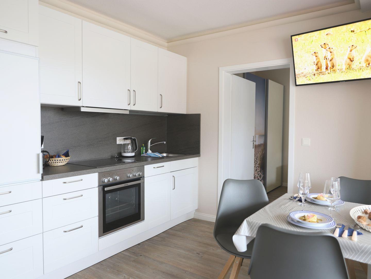 Ideal für bis zu drei Personen: Komfortables Appartement im Herzen von Westerland, nur wenige Schritte vom Strand entfernt, mit Ost-Balkon, Park-Combilift und Münzwaschmaschine und -trockner im Keller.