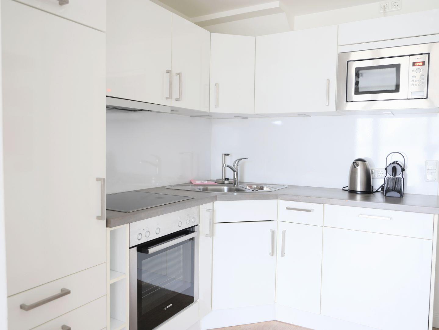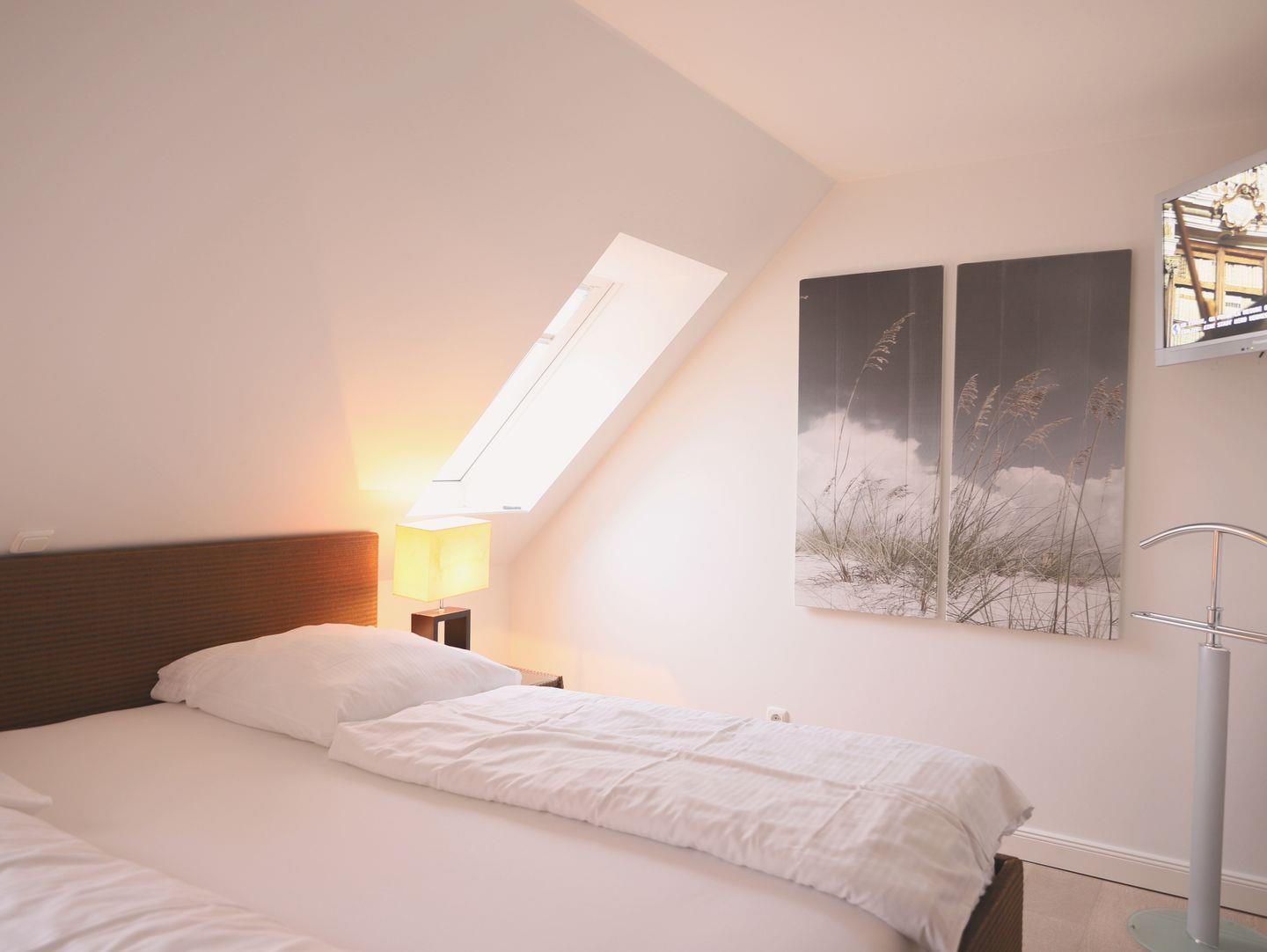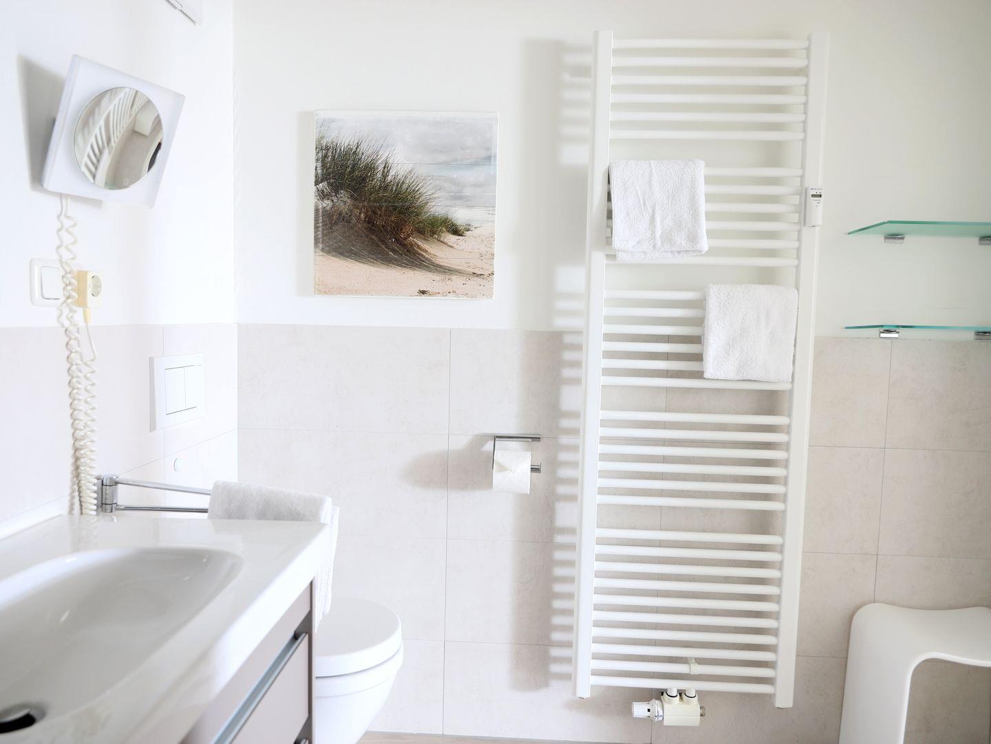Diese moderne 2-Zimmer-Wohnung im 2. Obergeschoss bietet auf 60 m² Platz für bis zu 4 Personen. Der lichtdurchflutete Wohnbereich verfügt über eine Schlafcouch (160 x 190 cm), Kabel-TV mit DVD-Player sowie ein Bose Radio/CD-Player mit Connect-Kit für iPhone und iPod. Die offene Einbauküche ist mit Glaskeramik-Kochfeld, Backofen, Mikrowelle, Geschirrspüler und einer Nespresso-Maschine ausgestattet. Das Schlafzimmer bietet ein komfortables Doppelbett (200 x 200 cm) und Kabel-TV. Im modernen Badezimmer sorgen Fußbodenheizung, eine bodengleiche Dusche und ein beleuchteter Spiegel für Komfort. Der 12 m² große Ost-Balkon lädt mit einem Strandkorb und Terrassenmöbeln zum Entspannen ein. Ein Tiefgaragenstellplatz (Durchfahrtshöhe 2,0 m) und ein Fahrstuhl sind vorhanden. Gemeinschaftliche Münzwaschmaschine und Trockner befinden sich im Untergeschoss. Strand und Zentrum sind fußläufig erreichbar. Raucher werden gebeten, ausschließlich auf dem Balkon zu rauchen. Haustiere sind nicht gestattet.