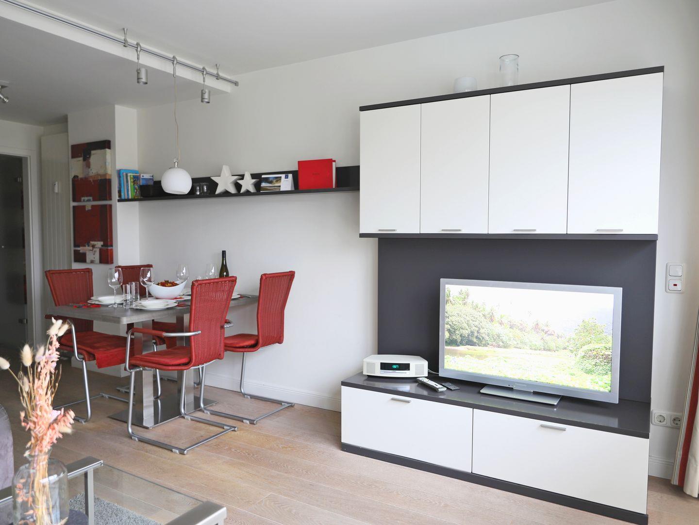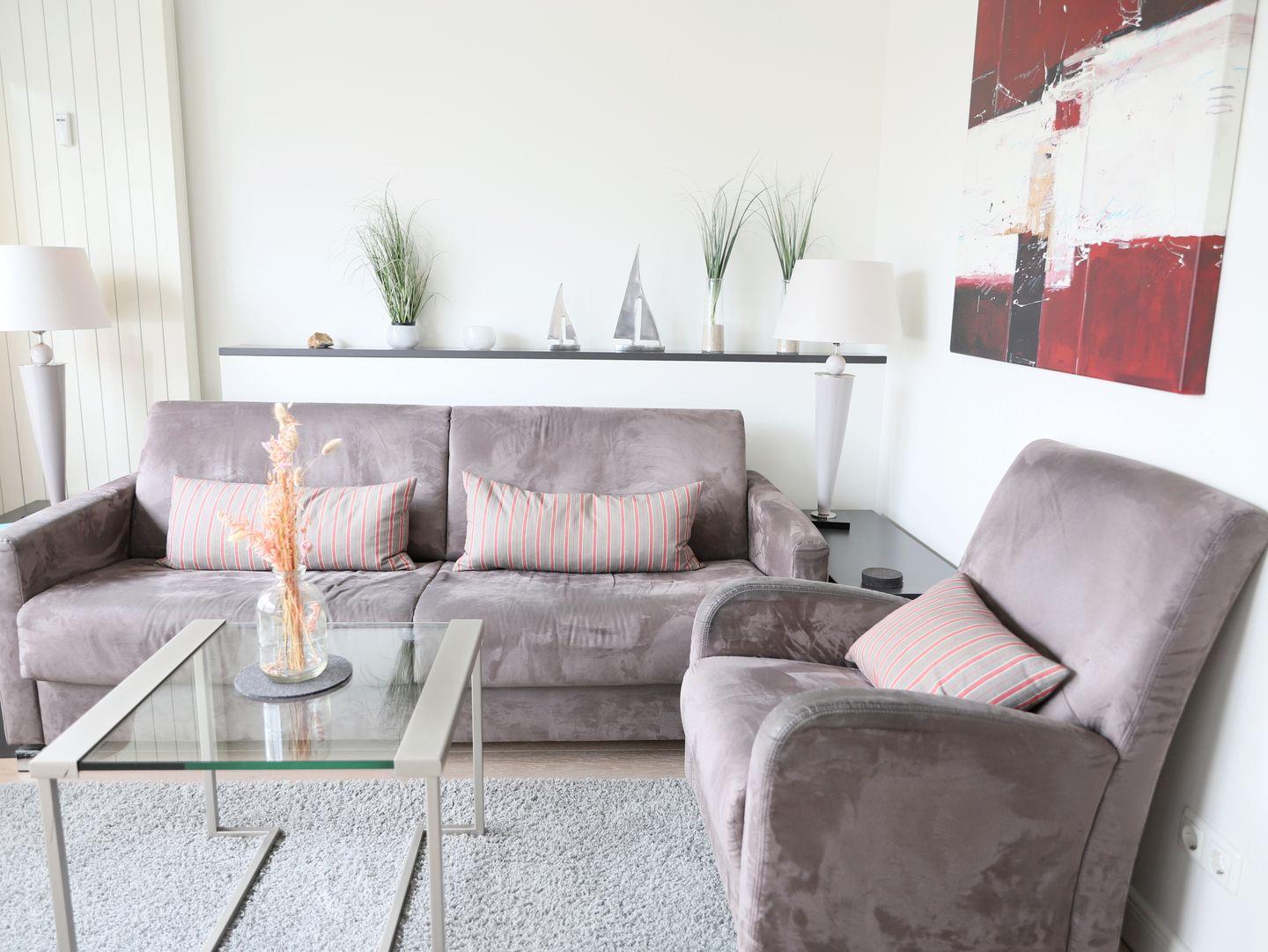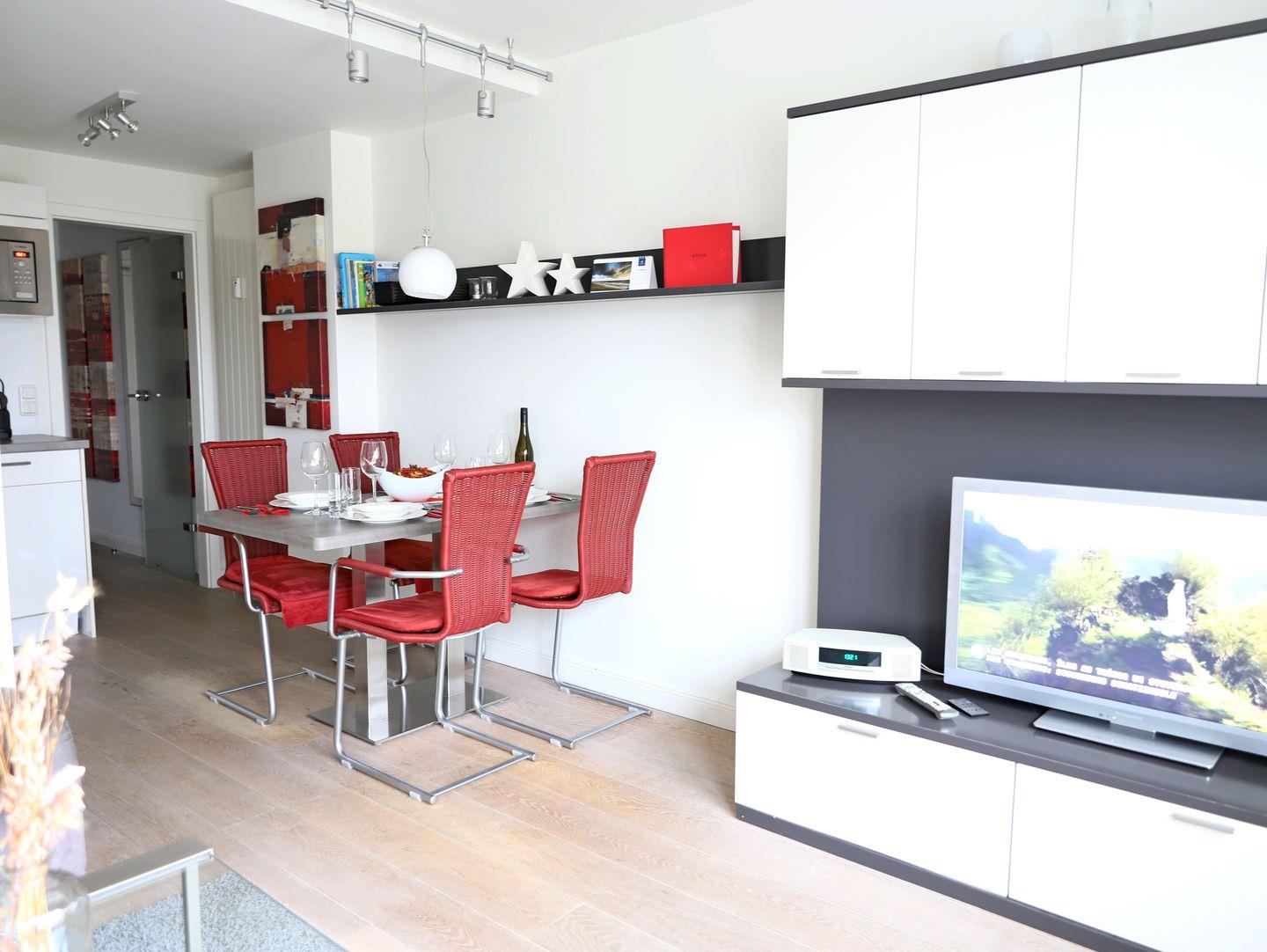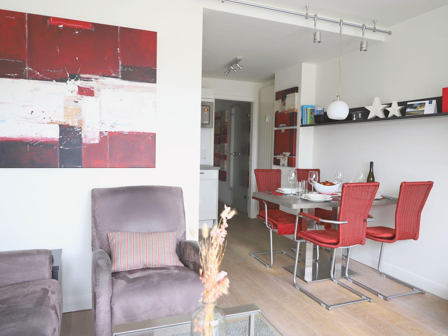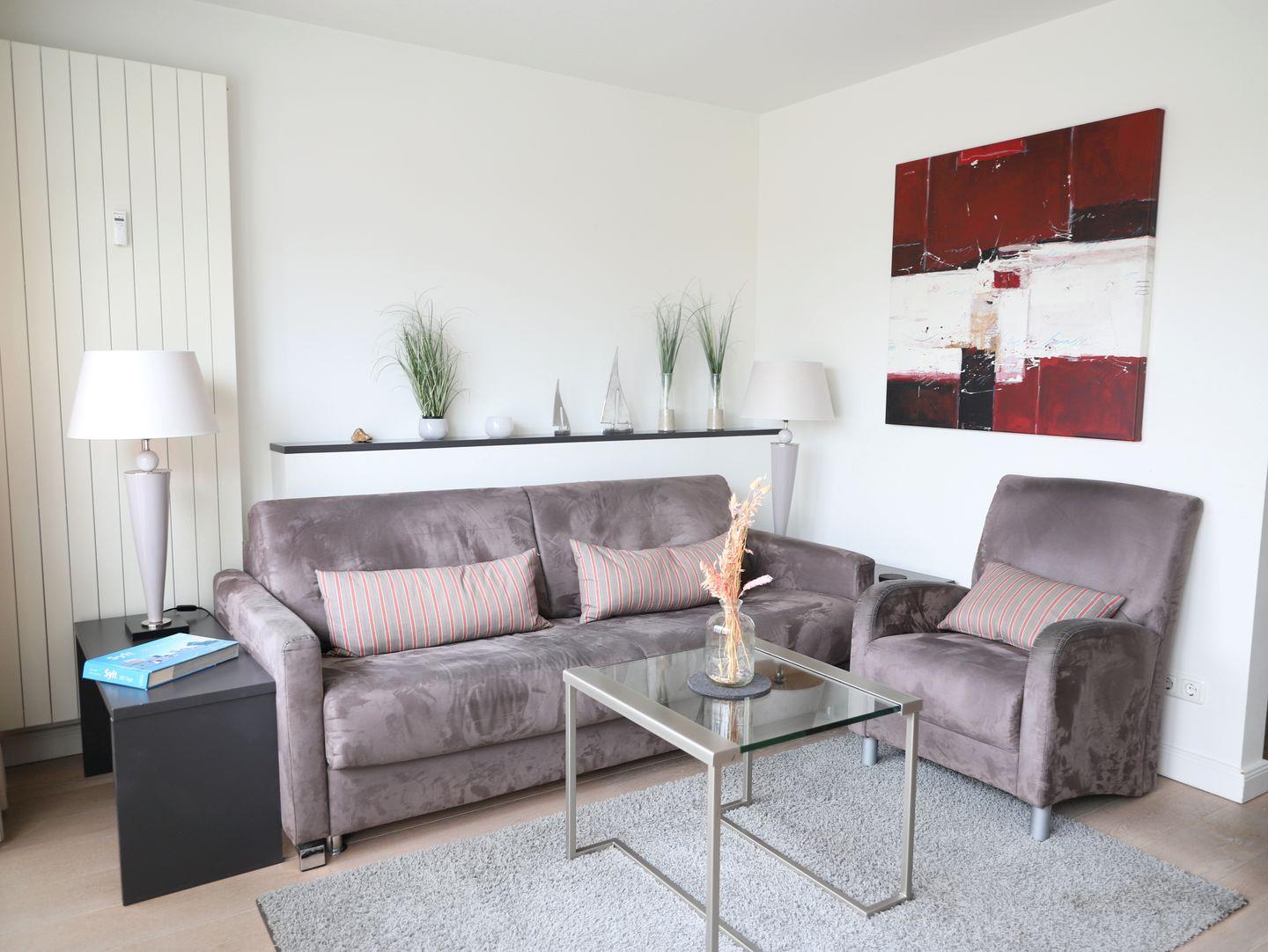 Hochwertige 2-Zimmer-Wohnung (60 m²) für bis zu 4 Personen in Westerland. Mit Ost-Balkon, Tiefgaragenplatz, Fahrstuhl, WLAN und moderner Ausstattung. Nur 600 m zum Strand, Haustiere nicht erlaubt.