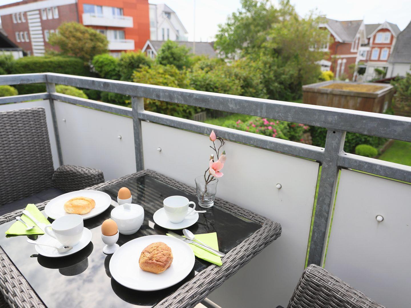 Helle 2-Schlafzimmer-Wohnung in Westerland für 4 Personen mit Süd-Balkon, Kabel-TV und kostenfreiem Stellplatz. Allergikerfreundlich, modern ausgestattete Küche und Badezimmer. Haustiere nicht gestattet.