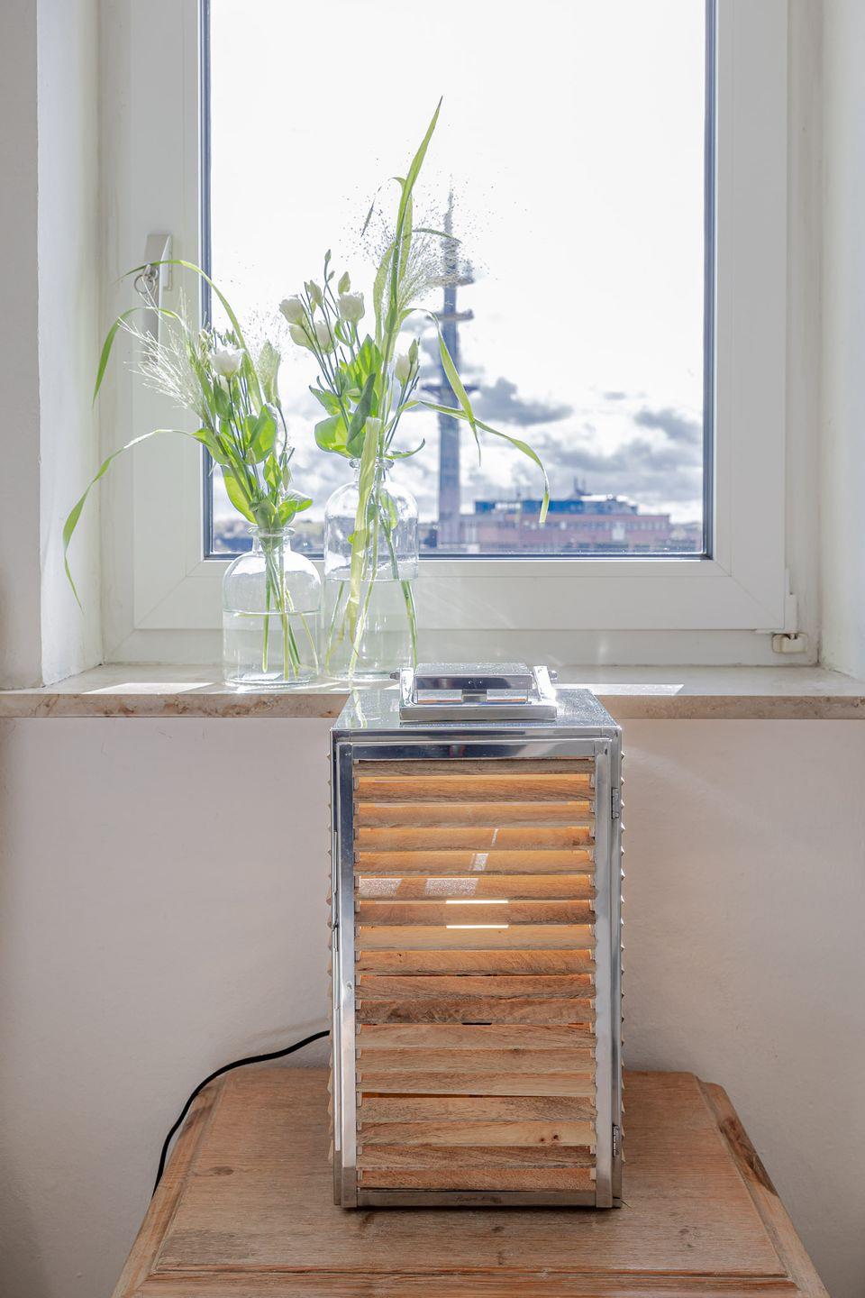 Auf rund 45 m² bietet die Wohnung Platz für bis zu vier Gäste. Die Aufteilung ist funktional und klar, mit zwei separaten Schlafzimmern, einem Wohnbereich mit Essplatz sowie einer gut ausgestatteten Küche. Die Einrichtung hat einen eigenen Charakter und wirkt bewusst individuell – getragen wird das Gesamtbild vor allem von der Lage und dem Ausblick.