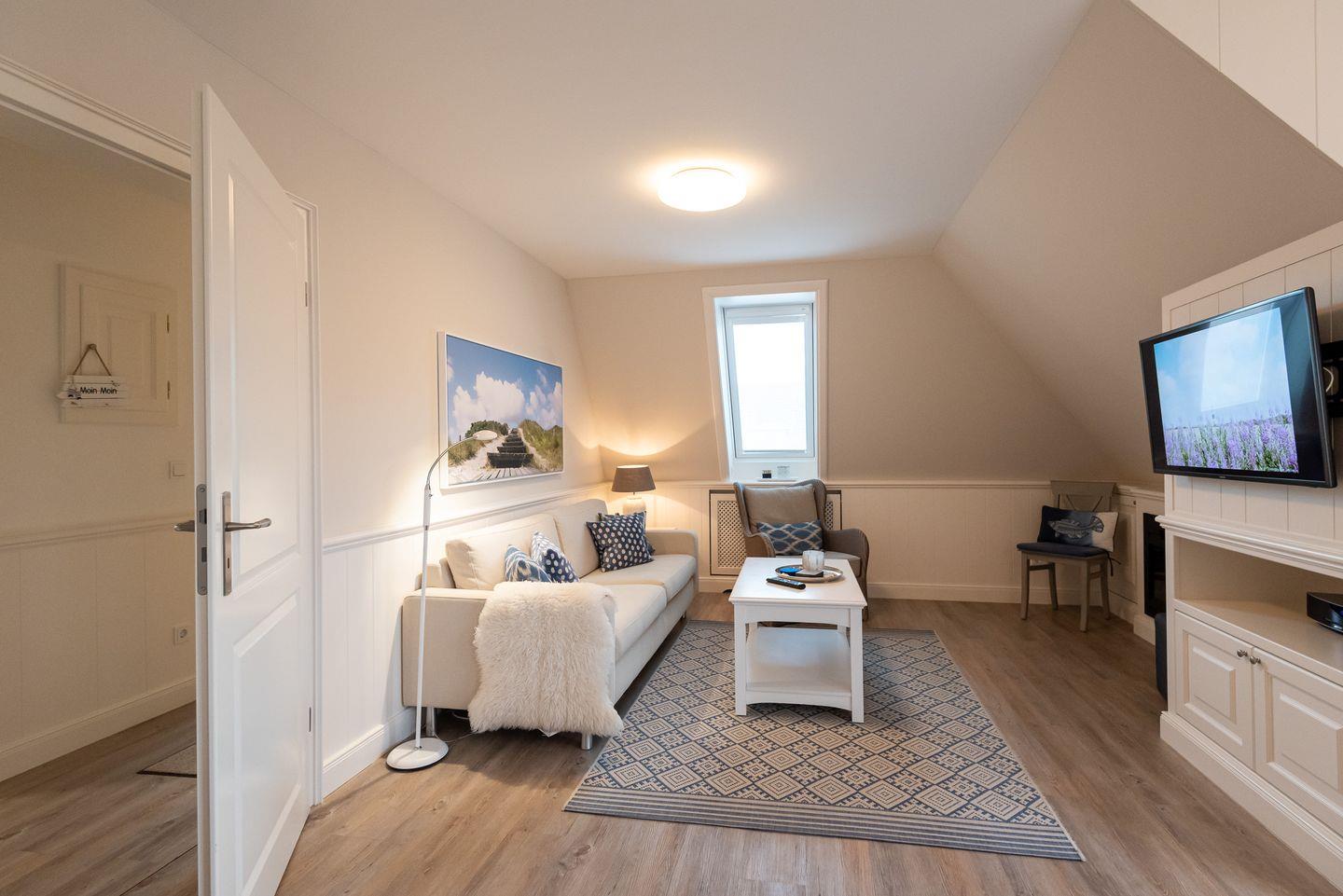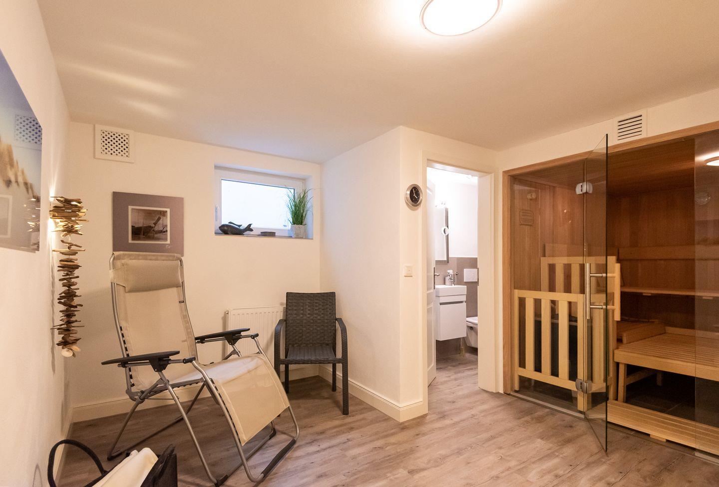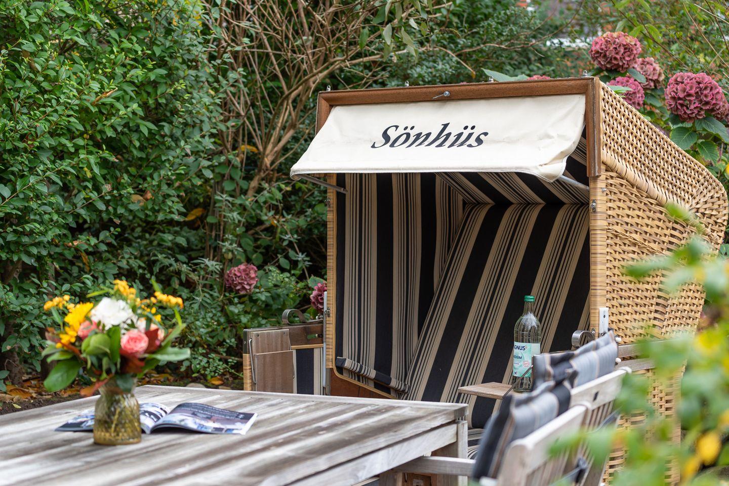 Besonderheiten: Auf dem Grundstück steht Ihnen eine eigene Terrasse mit Gartenmöbeln und Strandkorb zur Verfügung. Im Untergeschoss des Hauses befindet sich ein Waschraum mit Trockner und Waschmaschine zur kostenfreien und gemeinschaftlichen Nutzung sowie eine Sauna mit kleinem Ruhebereich und ein separates Bad. Ein eigener Fahrradschuppen auf dem Grundstück ermöglicht das sichere Abstellen Ihrer Fahrräder. Im gleichen Haus befindet sich unsere schöne Sönhüs Whg. 1 EG (69/1) für bis zu 4 Personen. Bei Interesse können beide Feriendomizile für bis zu 8 Personen in Kombination gebucht werden.