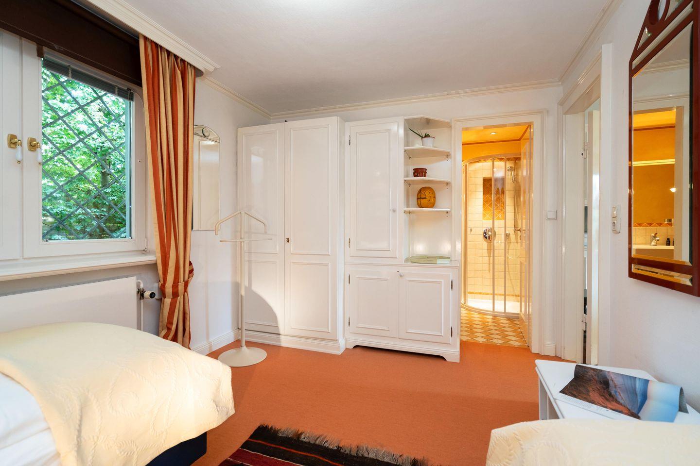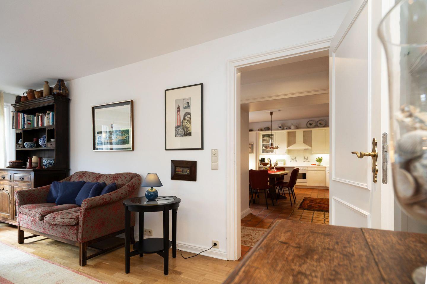Das freistehende, ebenerdige Ferienhaus "Hideaway" bietet auf ca. 100 m² ein stilvolles und gemütliches Ambiente für bis zu 4 Personen. Ruhig gelegen im idyllischen Alt-Westerland, ist es mit seinem großzügigen, eingezäunten Garten der perfekte Ort für erholsame Tage auf Sylt. Das helle Wohnzimmer lädt mit einem bequemen Sofa, Sesseln, einem kleinen Schreibtisch sowie TV zu Entspannen ein. Von hier aus gelangen Sie direkt auf die möblierte Südterrasse und in den liebevoll angelegten Garten mit reetgedecktem Pavillon – ideal, um die Ruhe und das friesische Flair in vollen Zügen zu genießen. Im angrenzenden Esszimmer finden bis zu 6 Personen an einem rustikalen Holztisch Platz – perfekt für gemeinsame Mahlzeiten in gemütlicher Runde. Die offene Landhausküche ist komplett ausgestattet, inkl. Geschirrspüler und modernen Annehmlichkeiten, um Sie auch kulinarisch bestens zu versorgen. Das Hauptschlafzimmer ist mit einem elektrisch verstellbaren Doppelbett (2x 90x200 cm) und einem geräumigen Einbauschrank ausgestattet. Ein eigenes Tageslichtbad en suite mit Dusche und WC rundet den Komfort ab. Das zweite Schlafzimmer verfügt über zwei Einzelbetten (je 90x200 cm) und einen Kleiderschrank. Auch hier steht ein eigenes Tageslichtbad mit Badewanne, separater Dusche und WC zur Verfügung. Ein einladender Flur mit Garderobe im Eingangsbereich sowie ein zusätzliches Gäste-WC sorgen für noch mehr Bequemlichkeit während Ihres Aufenthaltes. WLAN (ohne Gewähr) sowie zwei PKW-Stellplätze sind vorhanden. Ein Hund ist herzlich willkommen.