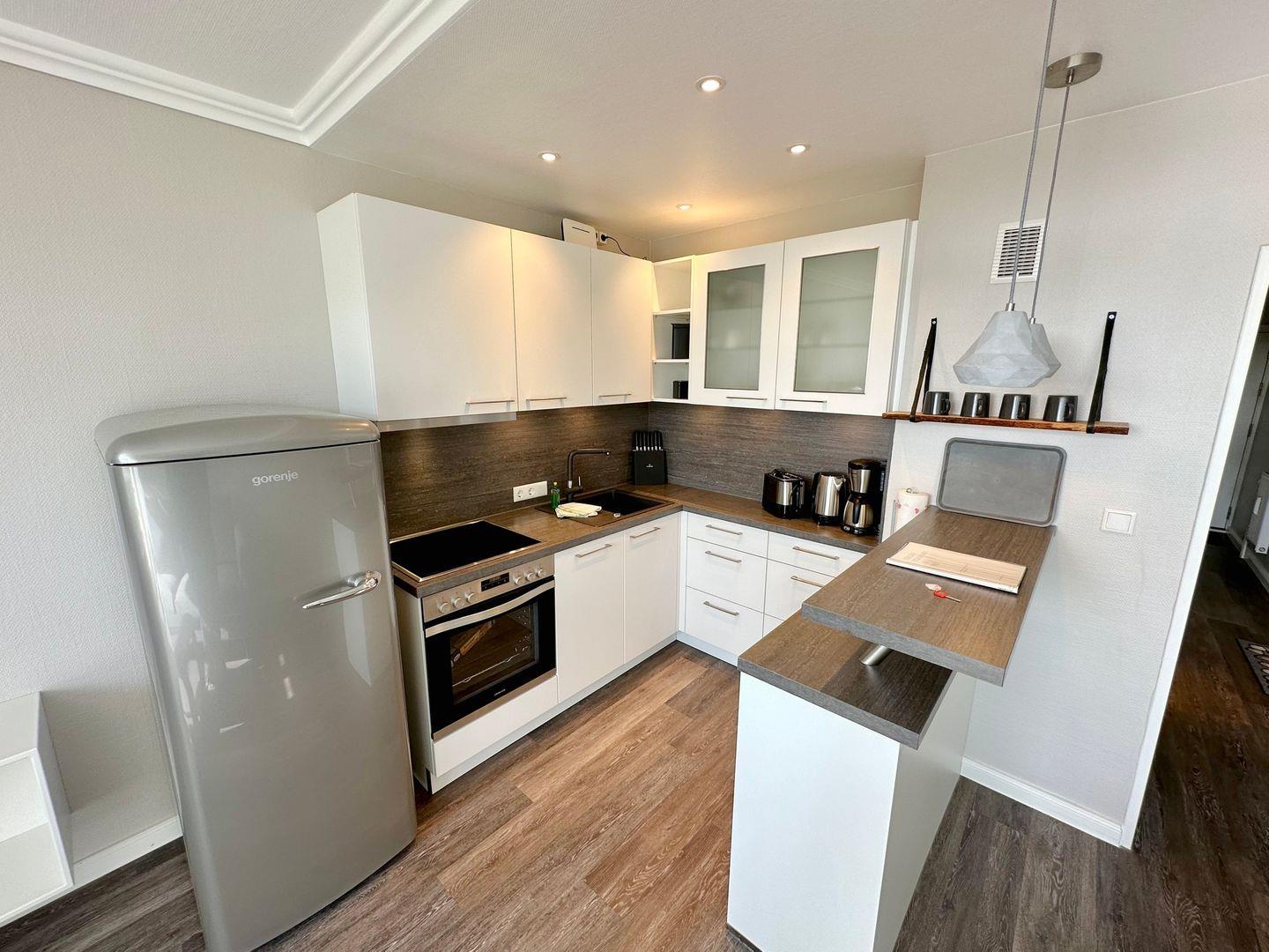 ausgestattete Küchenzeile verfügt über einen E-Herd mit Cerankochfeld, einen