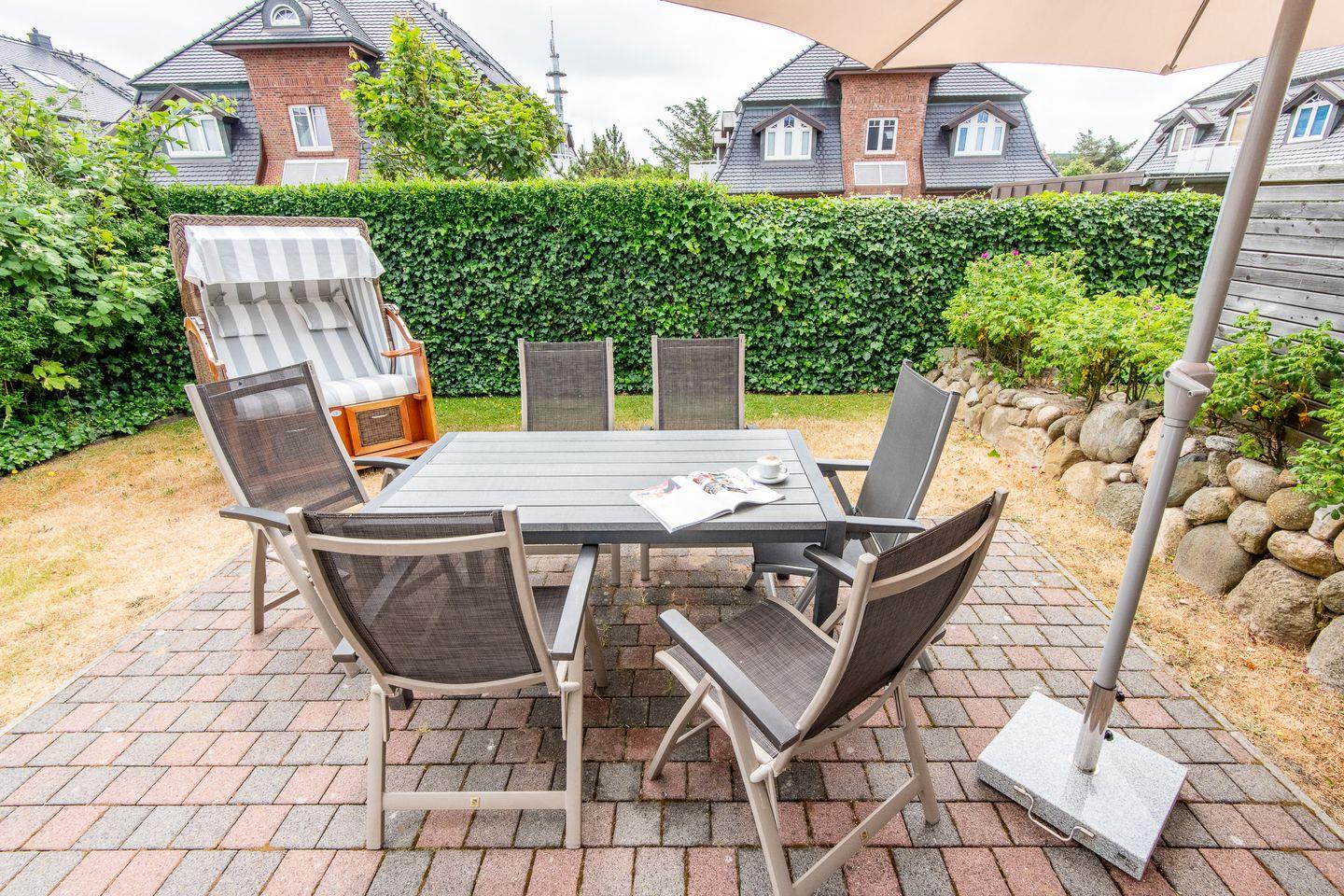 Die stilvolle Ferienwohnung im 'Haus Nordmarkgarten' bietet auf ca. 96 qm und zwei Ebenen luxuriösen Komfort und eine strandnahe Lage in Westerland auf Sylt. Sie ist perfekt geeignet für Familien oder eine Gruppe von bis zu 6 Personen, die eine ruhige und komfortable Unterkunft suchen. Haustiere sind nicht gestattet.