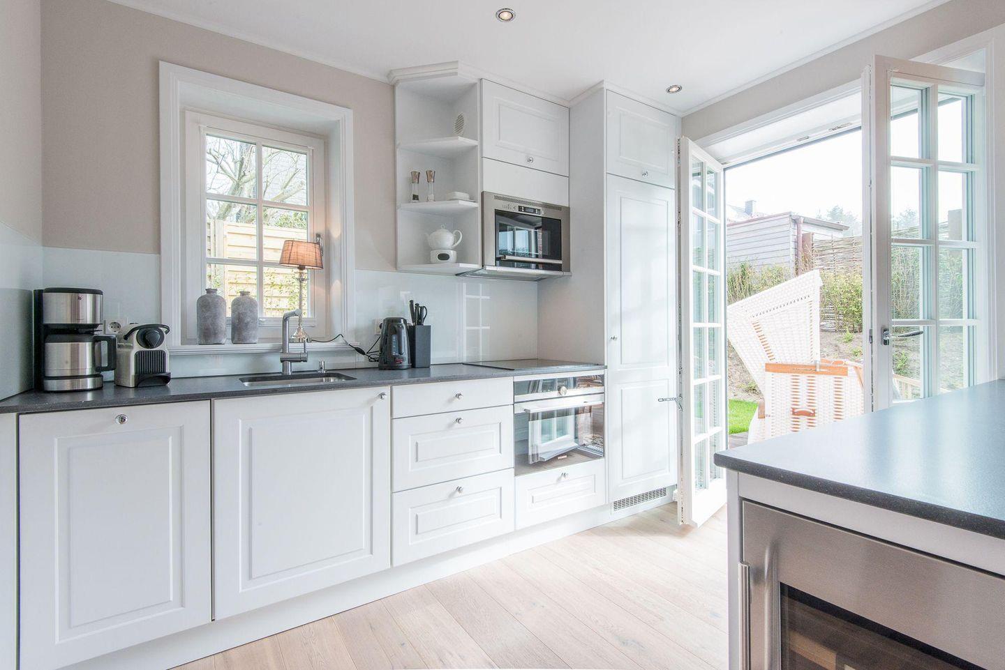 Die offene, voll ausgestattete Küche ist für kulinarische Erlebnisse bestens vorbereitet und bietet modernen Komfort wie ein Cerankochfeld, einen Geschirrspüler und einen Weinkühlschrank. Die hochwertigen Geräte und die durchdachte Ausstattung lassen keine Wünsche offen und machen das Kochen zum Genuss.