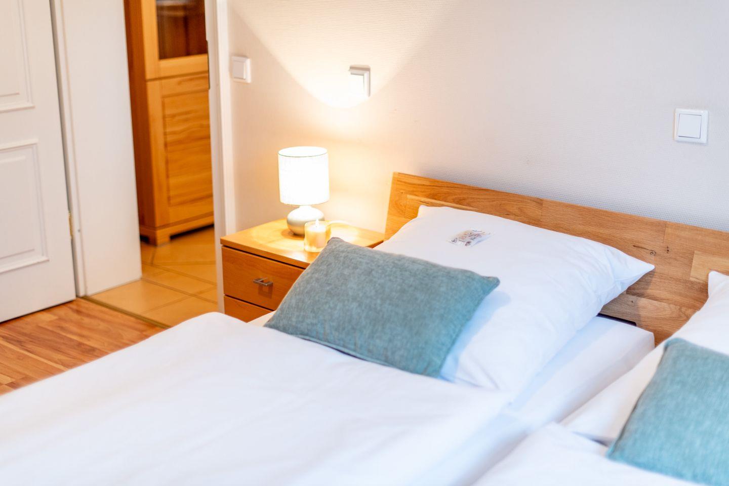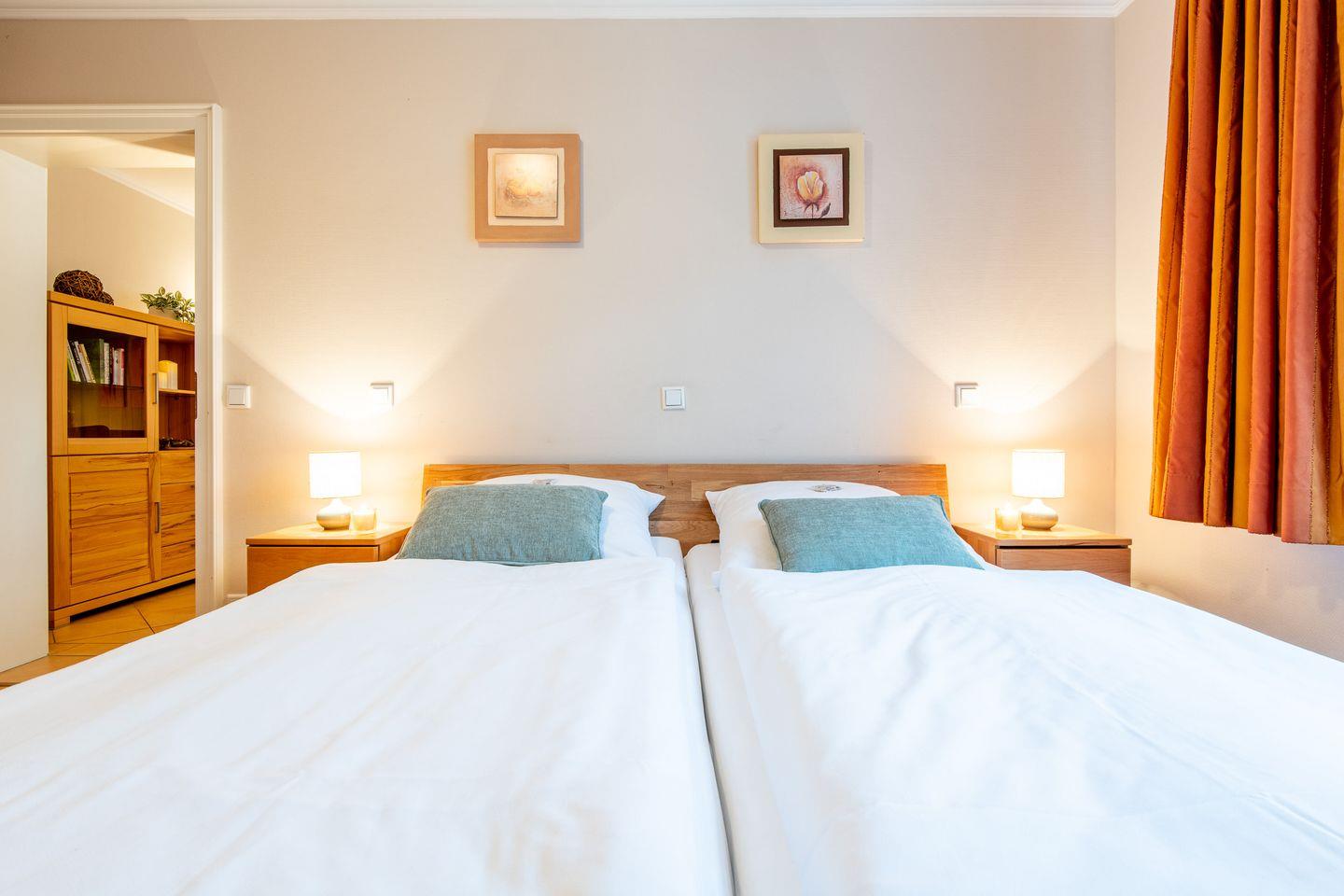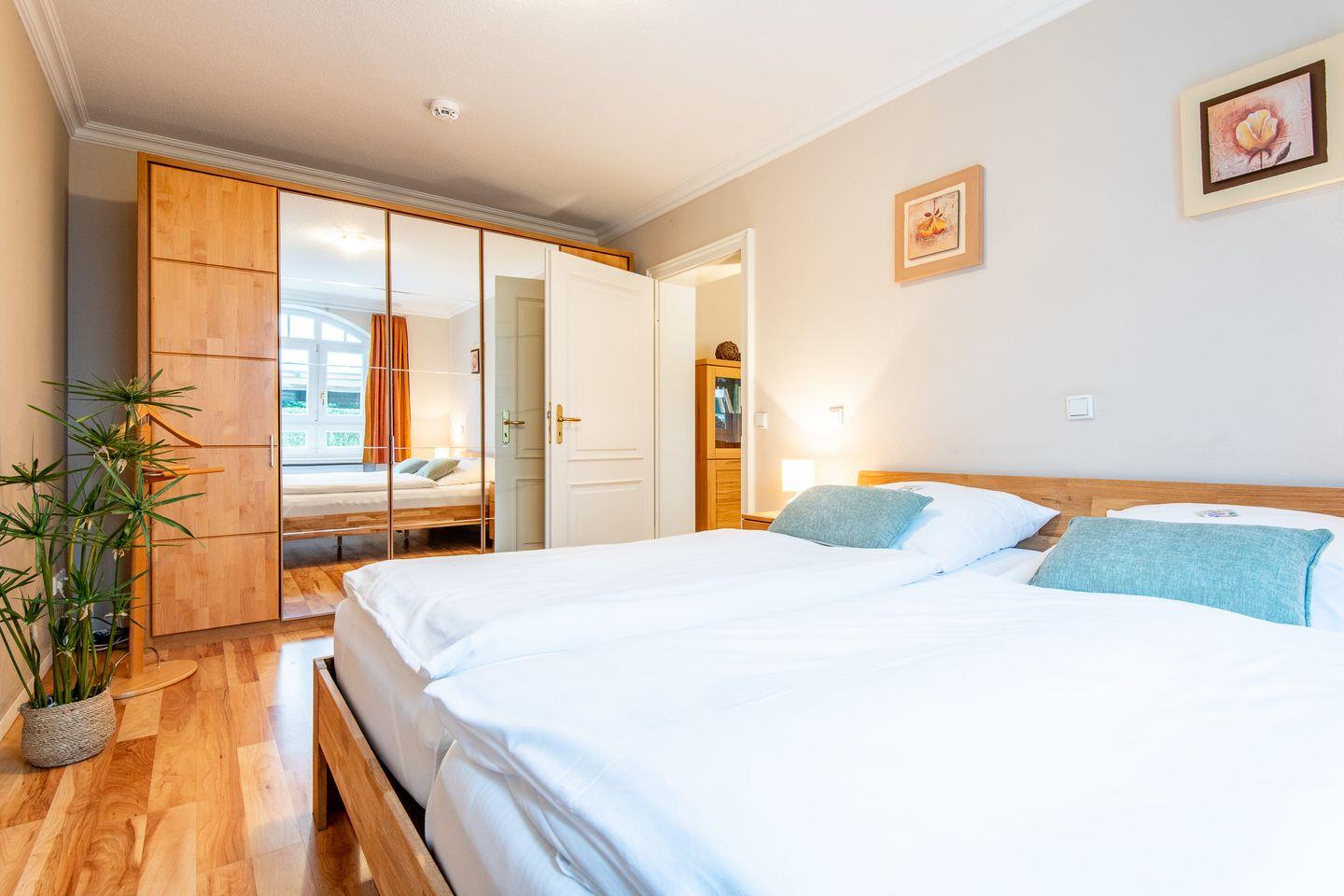Das Schlafzimmer bietet ein Doppelbett (2x 90x200 cm), einen großen Kleiderschrank und einen TV für entspannte Abende.