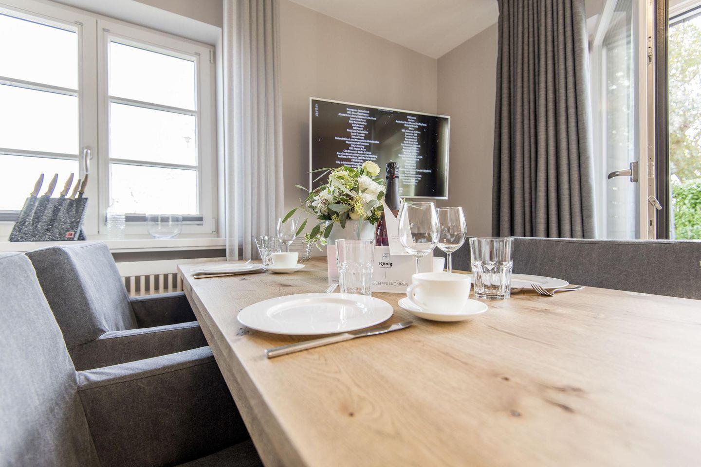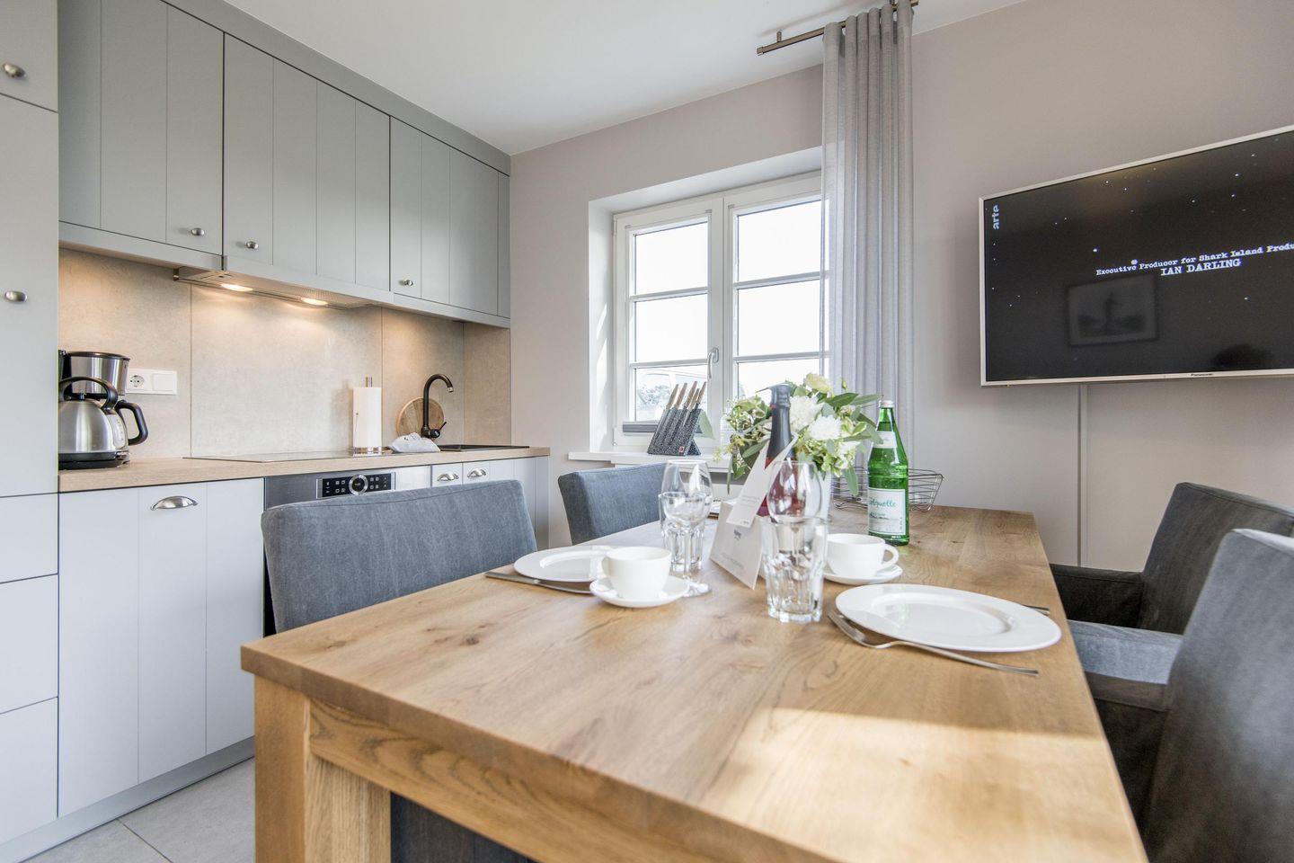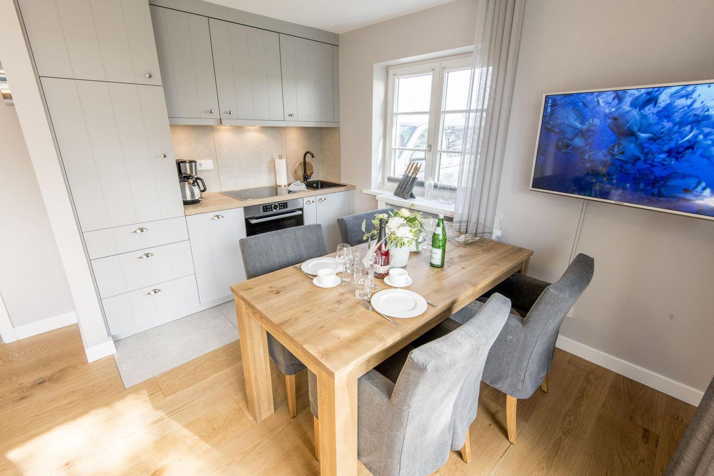 In der offenen und modernen Küche finden Sie alles, was Sie für die Zubereitung Ihrer Mahlzeiten benötigen. Ausgestattet mit einem Cerankochfeld, lässt sie keine Wünsche offen und ermöglicht Ihnen, nach Herzenslust zu kochen. Der angrenzende Essbereich bietet Platz für gemeinsame Mahlzeiten und gesellige Stunden.