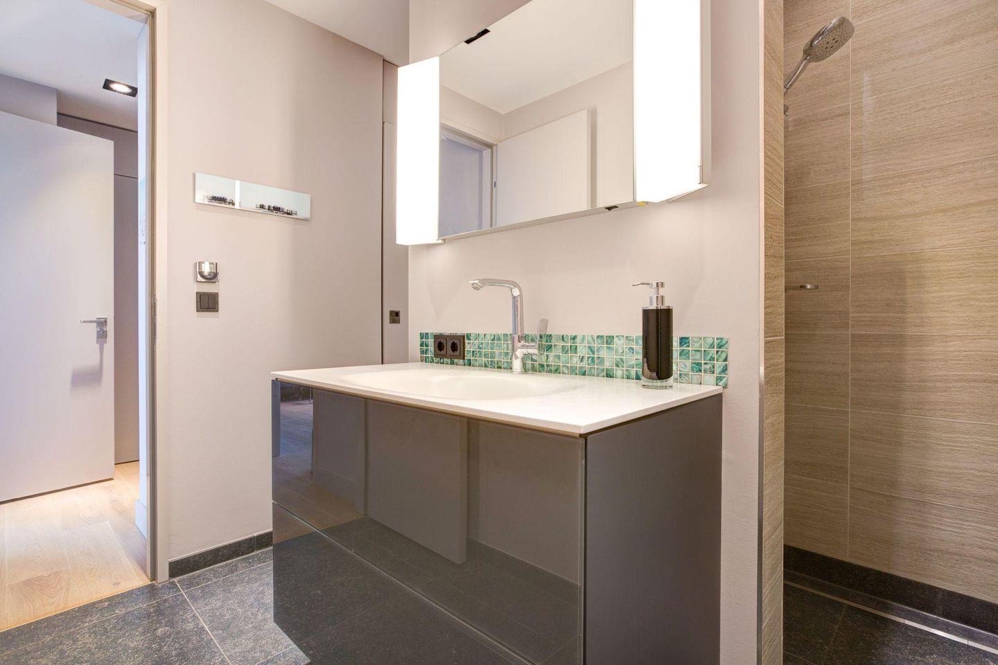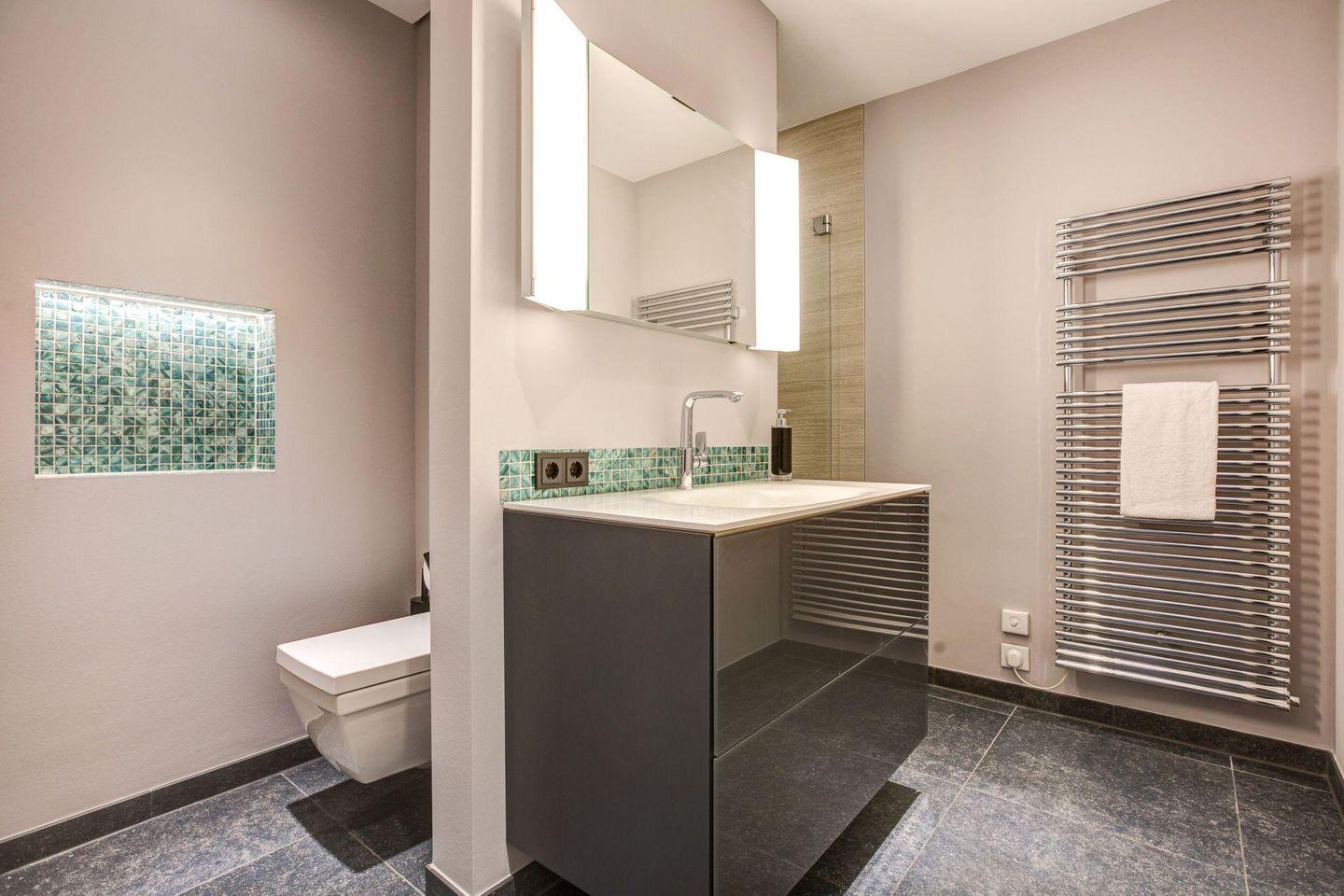 Das moderne Badezimmer ist mit einer ebenerdigen Dusche, WC, Handtuchwärmer und Fön ausgestattet und bietet alles, was Sie für ein entspanntes Frischegefühl benötigen.