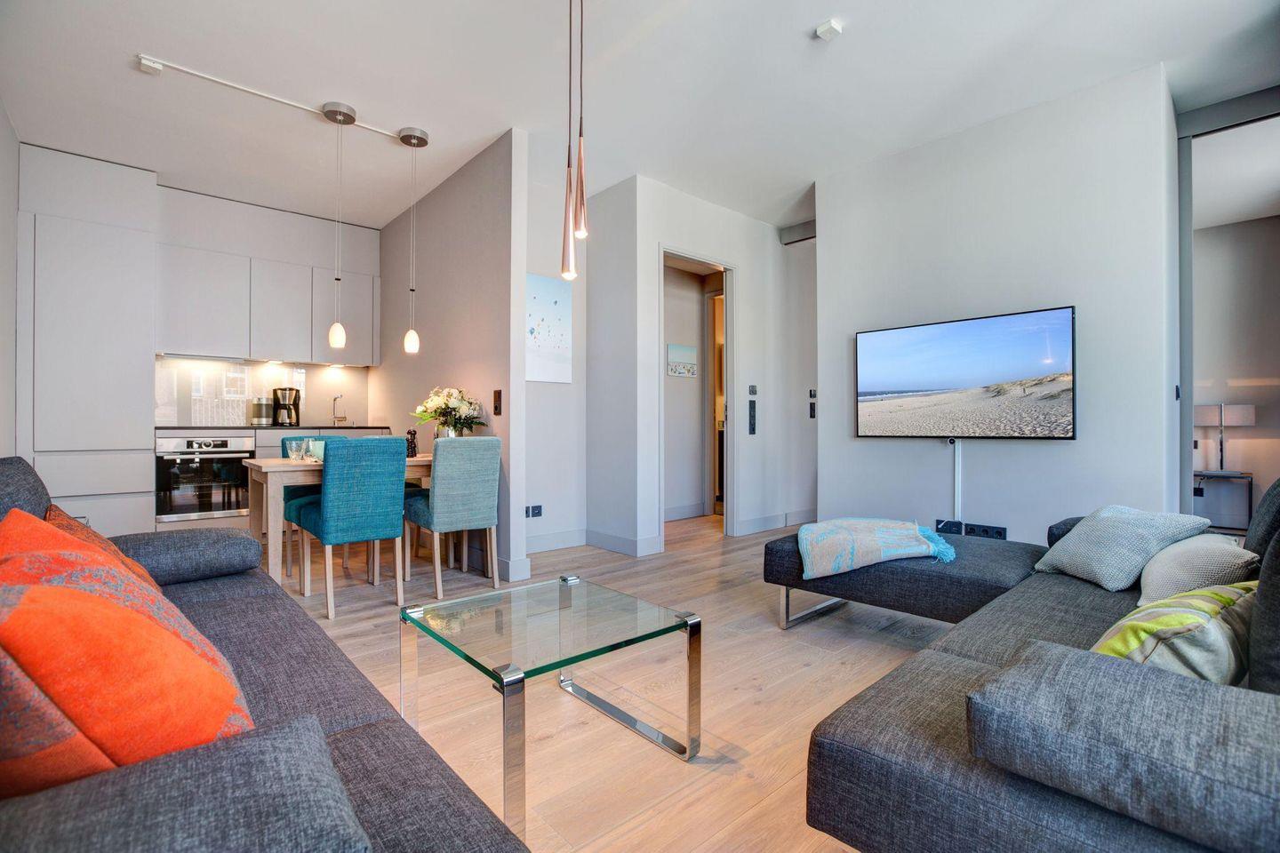 Luxuriöse 1-Zimmer-Ferienwohnung in der 'Neuen Mitte' auf ca. 58 m², ideal für bis zu 2 Personen. Die stilvolle Gestaltung und durchdachte Raumaufteilung bieten Ihnen ein außergewöhnliches Wohnerlebnis im Herzen von Westerland, nur wenige Schritte vom Strand entfernt. Genießen Sie die Nähe zur Sylt-Gastronomie und das zentrale Stadtleben – und dennoch absolute Ruhe an Ihrem persönlichen Rückzugsort. Haustiere nicht gestattet.