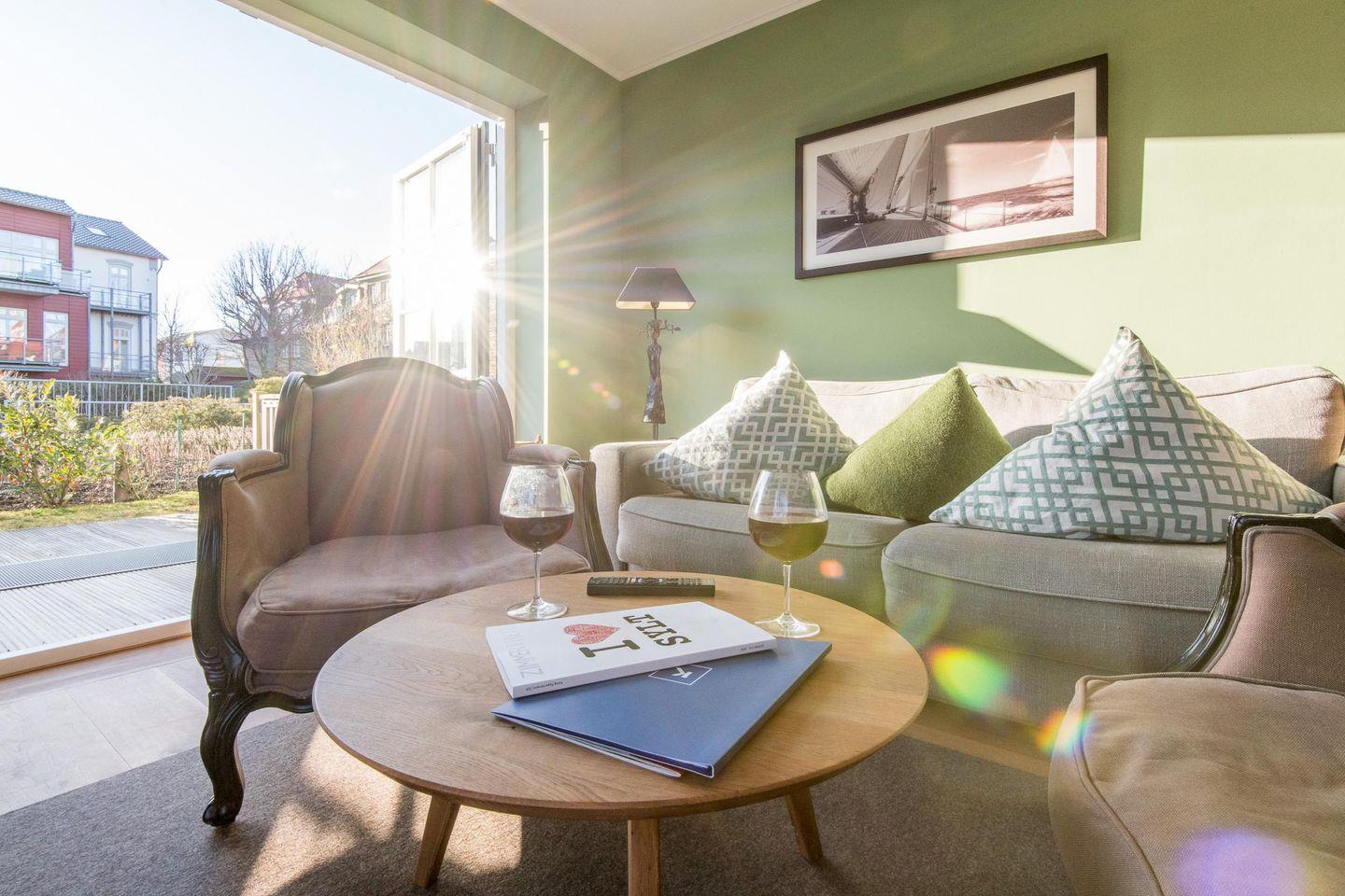 Willkommen in dieser stilvollen, ca. 47 m² großen 2-Zimmer-Wohnung, die sich über zwei Ebenen erstreckt und bis zu 4 Personen Platz bietet. In zentraler Lage in Westerland und nur wenige Gehminuten vom Strand entfernt, lädt dieses luxuriös eingerichtete Domizil mit einer harmonischen Mischung aus Tradition und Moderne zum Verweilen ein. Durch ihre Ecklage ist die Wohnung lichtdurchflutet und bietet einen schönen Blick auf den Garten und den historischen Berliner Hof. Hunde sind herzlich willkommen.