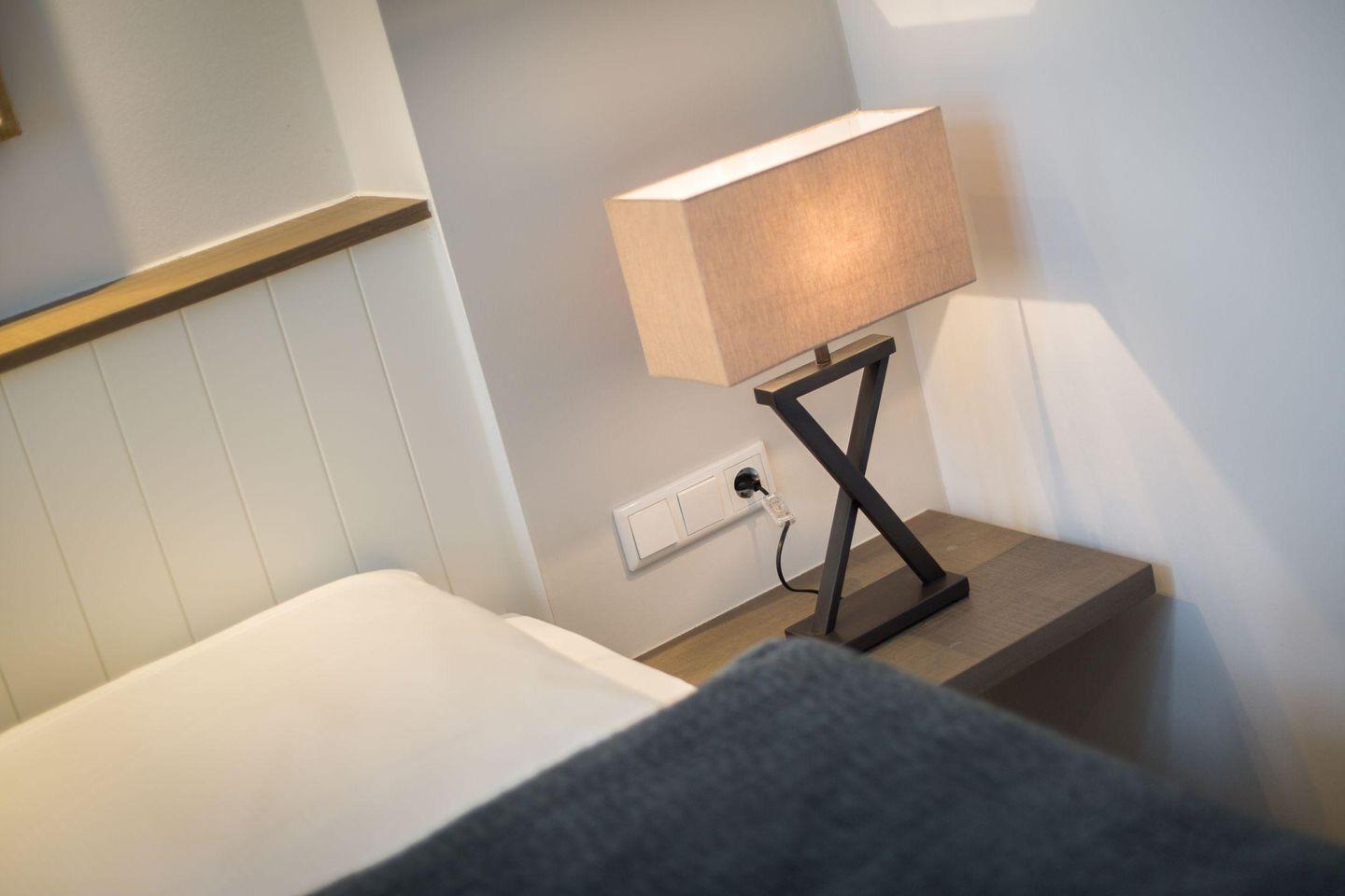 Das Schlafzimmer ist mit einem Doppelbett (2x 90x200 cm) ausgestattet und verfügt über einen Einbauschrank sowie ein TV, was Ihnen maximalen Komfort für erholsame Nächte bietet. Das elegante Badezimmer verfügt über eine moderne Dusche, WC, Fön und einen Handtuchwärmer und ergänzt das luxuriöse Ambiente der Wohnung.