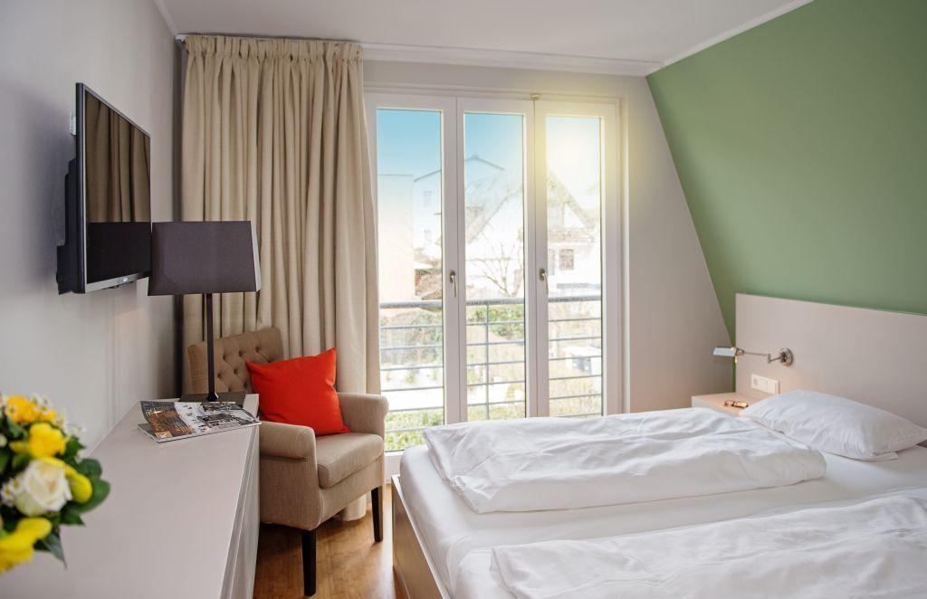 Beide Schlafzimmer sind ausgestattet mit Doppelbett (2x 90x200 cm), einem TV und Einbauschränken, die reichlich Stauraum bieten.