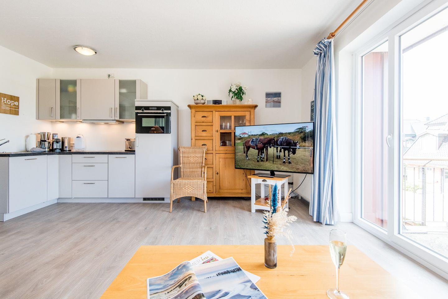 2-Zimmer-Ferienwohnung auf einer Ebene (1. OG) in Westerland mit ca. 45 qm für bis zu 2 Personen.