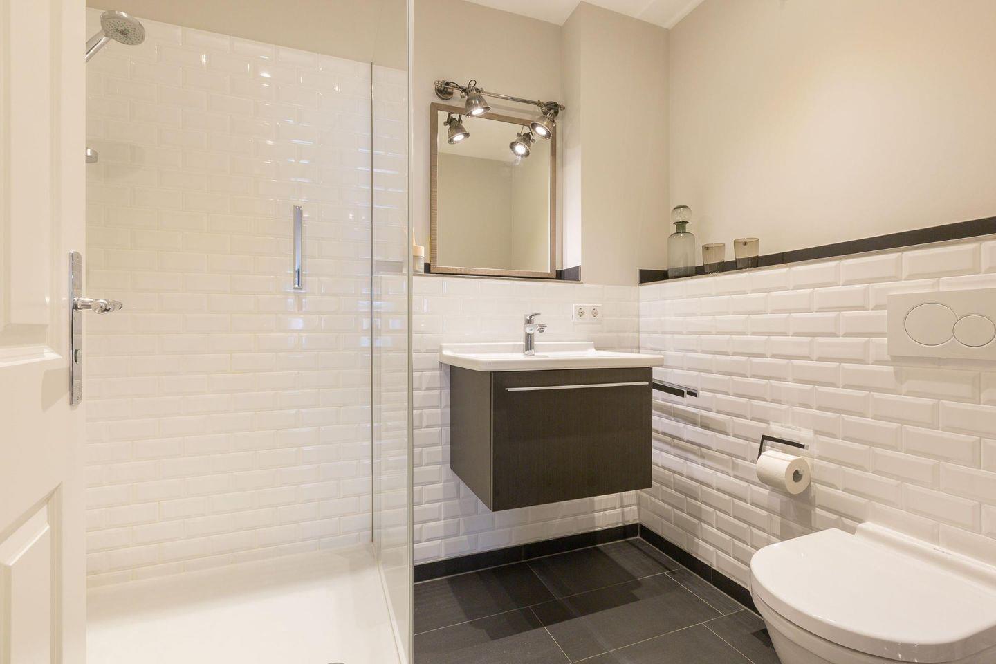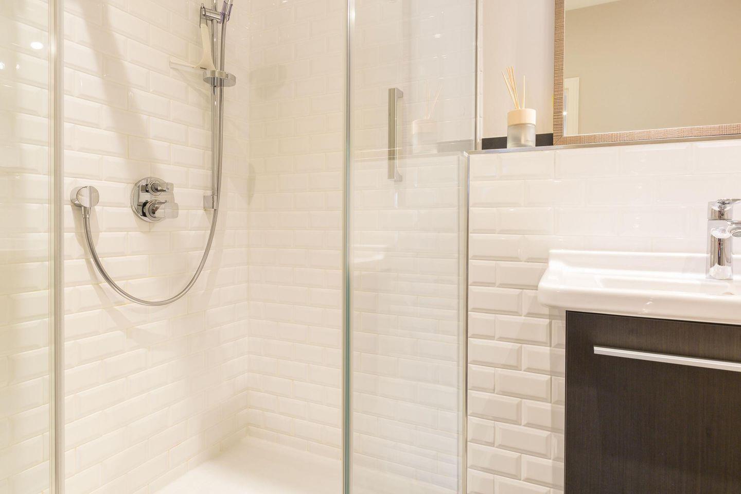 Das Badezimmer verfügt über eine Dusche, WC, Fön und Handtuchwärmer und rundet den Komfort dieser Wohnung ab.