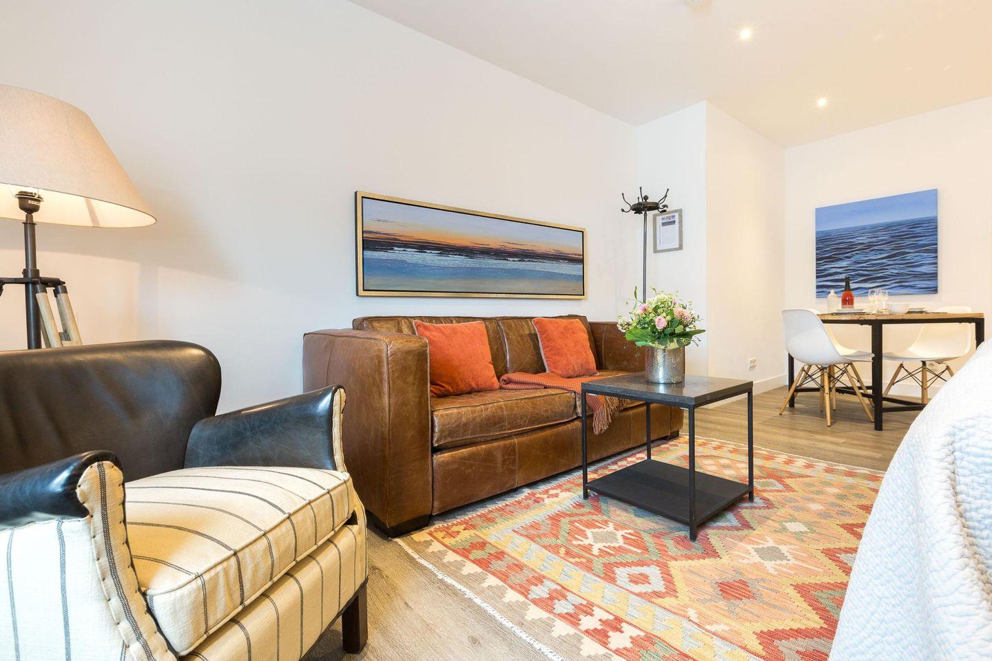 Die stilvolle 1-Zimmer-Ferienwohnung 'Manni' mit ca. 35 m² auf 1 Ebene (3. OG, mit Fahrstuhl) bietet Platz für bis zu 2 Personen und liegt zentral und strandnah in Westerland auf Sylt. Dieses besondere Domizil ist Teil des modern umgebauten ehemaligen Hotels 'Seeburg' an der Kurpromenade und trägt dank der Zusammenarbeit mit der Kunstgalerie Mensing eine künstlerische Note. Jede Wohnung wurde individuell und im charmanten Retro-Look gestaltet und mit exklusivem Mobiliar aus Frankreich, Belgien und England ausgestattet, um eine einladende Wohlfühlatmosphäre zu schaffen. Zum Strandübergang sind es nur 150 Meter. Haustiere sind nicht gestattet.