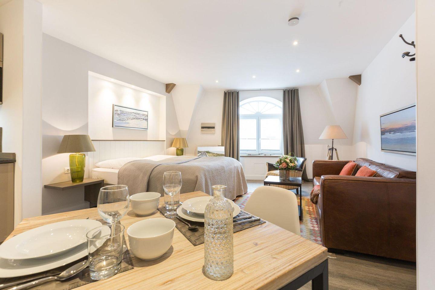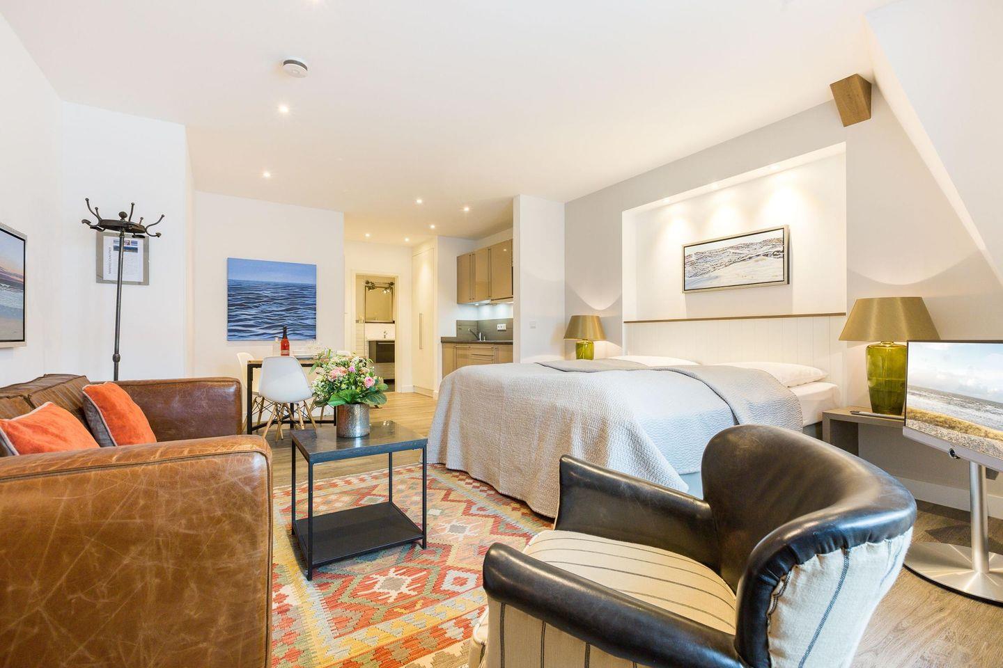 1-Zimmer-Ferienwohnung auf 1 Ebene (3.OG) in Westerland mit ca. 35 qm für bis zu 2 Personen.