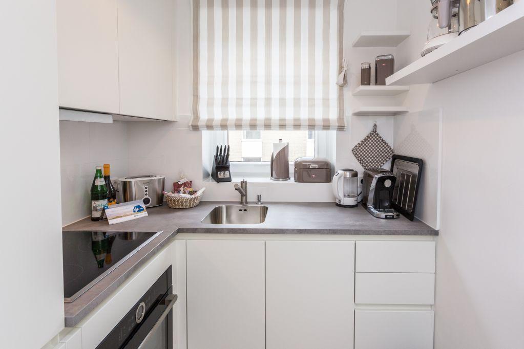 Die separate Küche ist modern ausgestattet und bietet Ihnen alles, was Sie für eine bequeme Selbstversorgung benötigen. Ein Mikrowellen-Backofen-Kombigerät, eine Tchibo Cafissimo-Maschine und weiteres hochwertiges Küchenequipment sorgen dafür, dass es Ihnen an nichts fehlt.