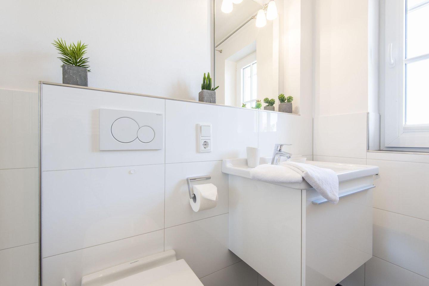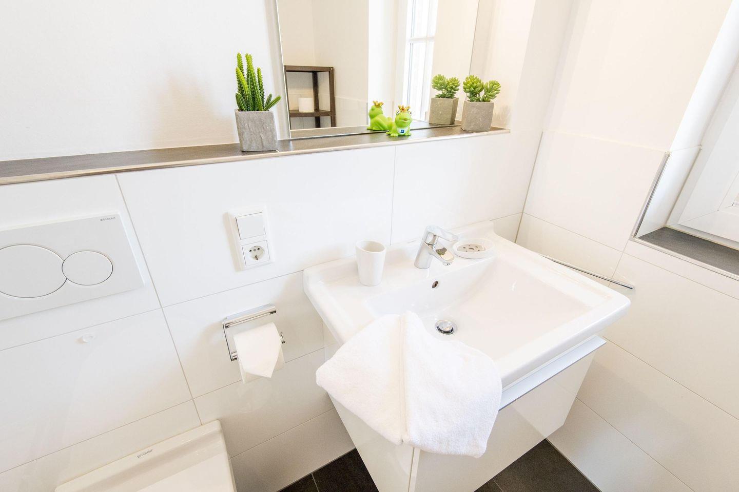 Im Eingangsbereich der Wohnung befindet sich eine Garderobe, und im Keller des Hauses stehen eine Waschmaschine und ein Trockner zur kostenlosen gemeinschaftlichen Nutzung zur Verfügung. Pkw-Stellplatz und WLAN (ohne Gewähr) vorhanden.