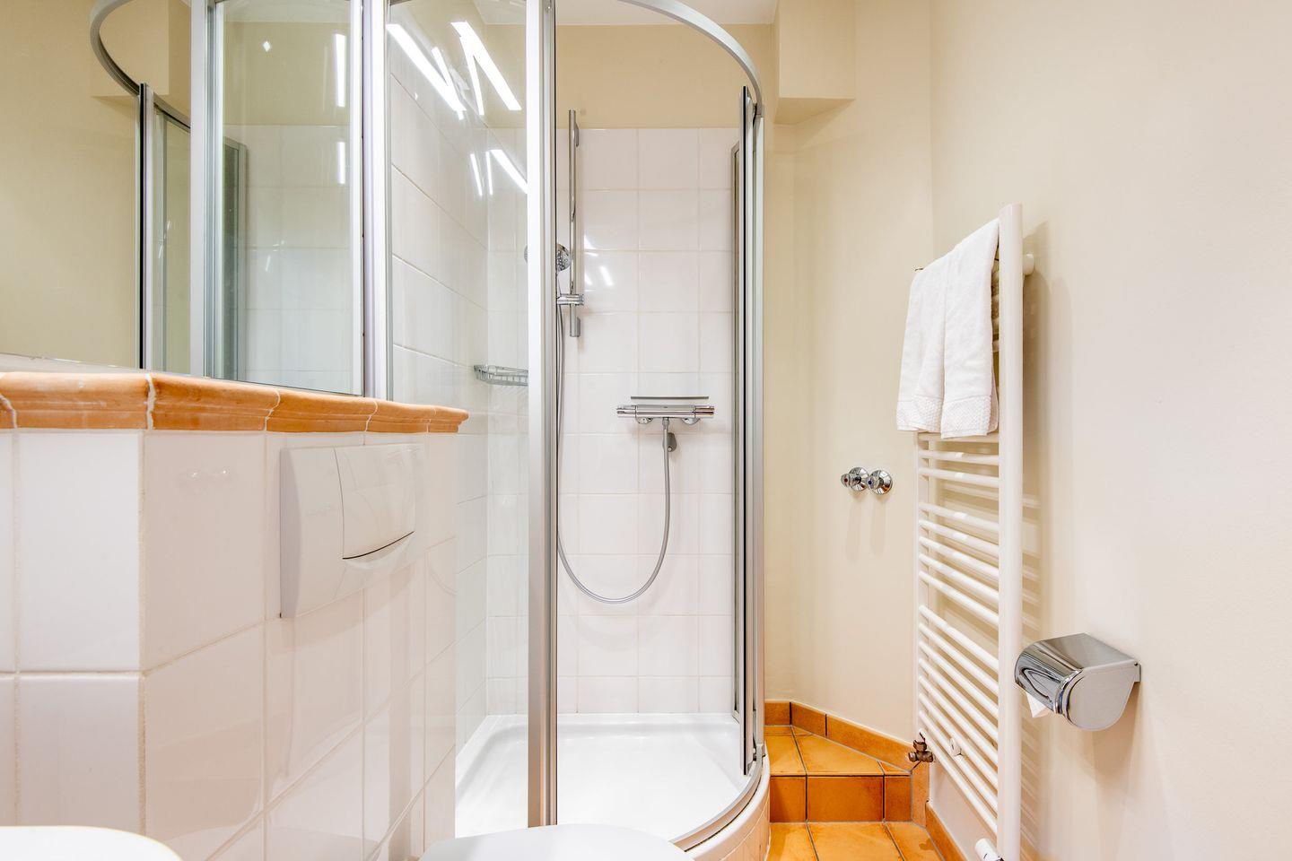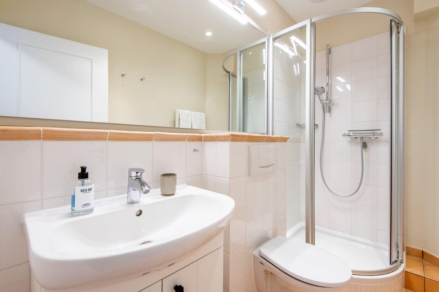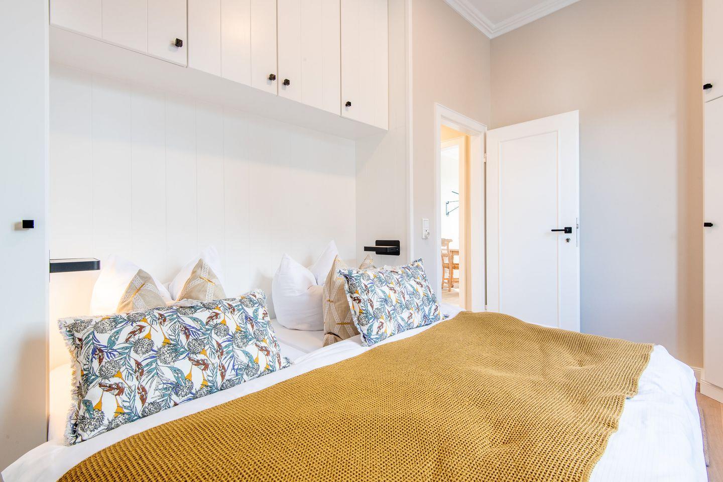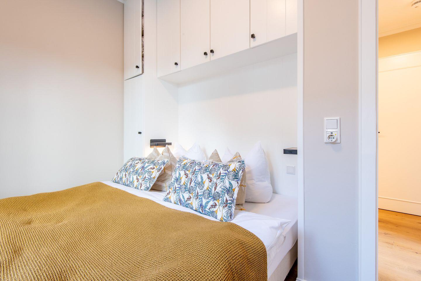 Das Schlafzimmer ist mit einem bequemen Boxspringbett (180x200 cm) und einem geräumigen Kleiderschrank ausgestattet, der reichlich Platz für Ihre Garderobe bietet. Das Badezimmer bietet eine moderne Dusche, WC, Föhn und einen Handtuchwärmer für zusätzlichen Komfort nach einem erlebnisreichen Tag.