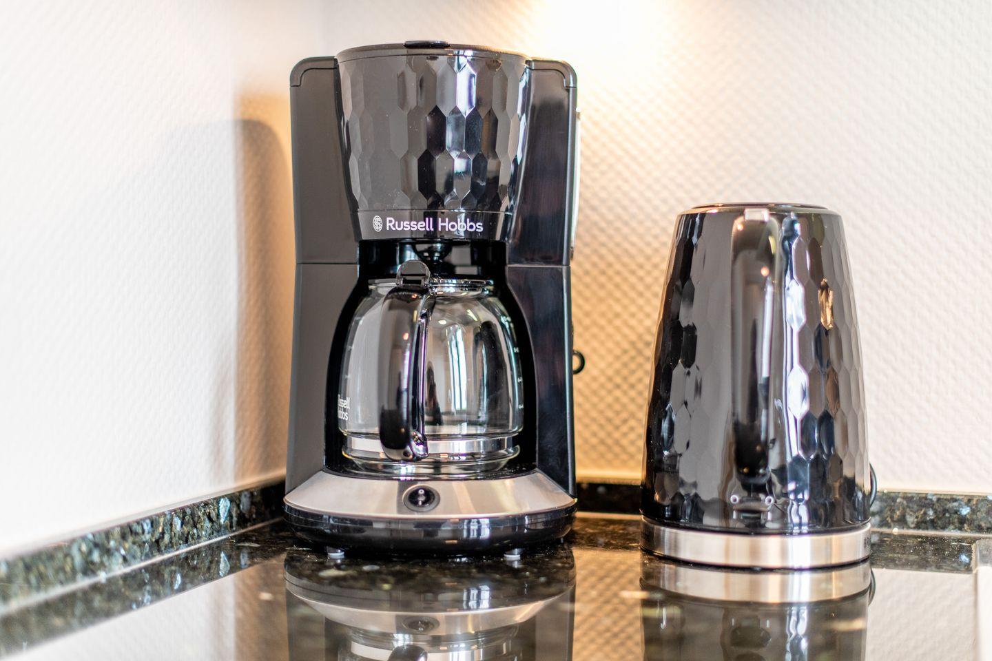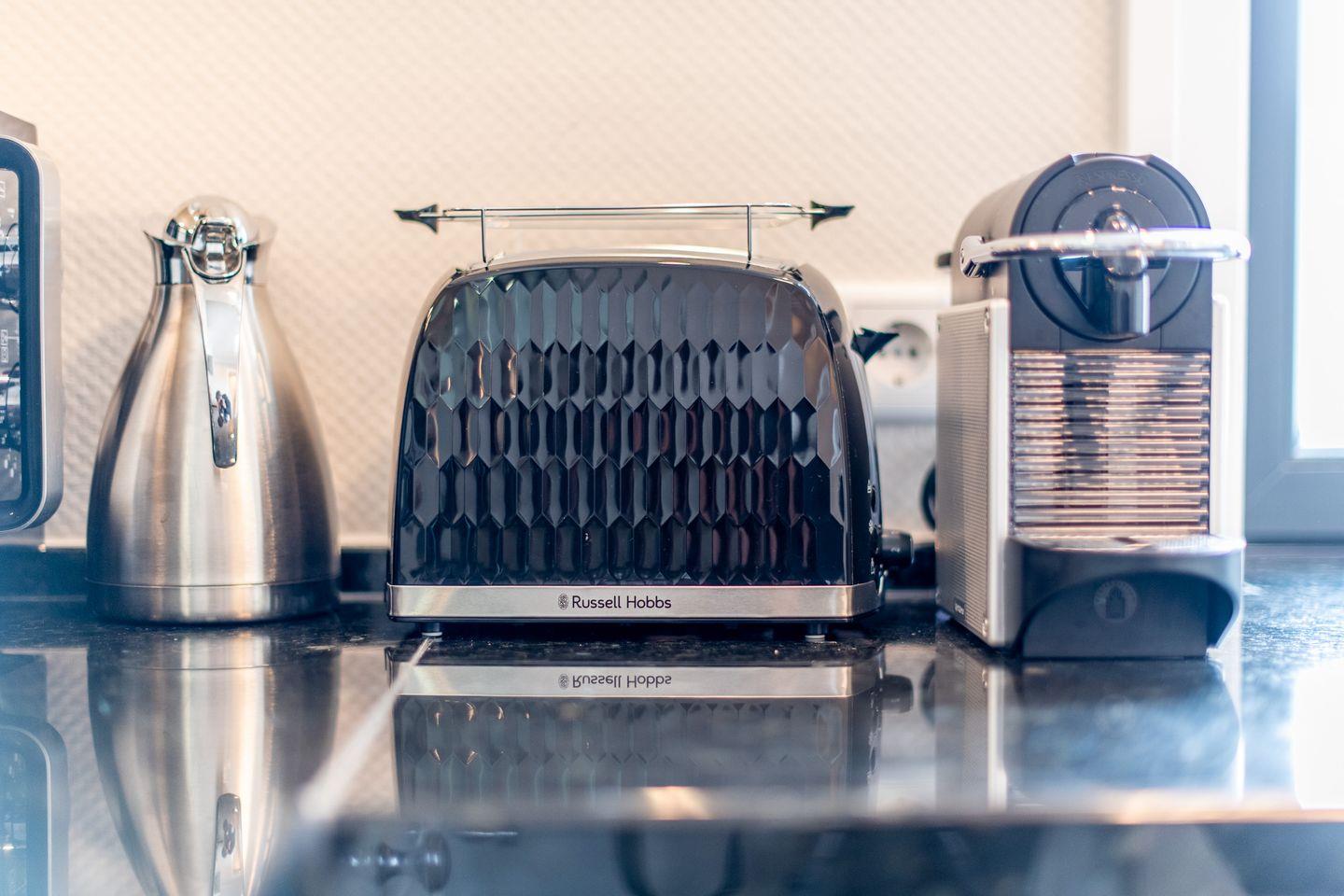 In der separaten Hochglanzküche finden Sie eine Granitarbeitsplatte, Cerankochfeld, Geschirrspüler, Nespresso-Maschine und Filterkaffeemaschine sowie weitere moderne Annehmlichkeiten, die Ihnen den Komfort bieten, Ihre Lieblingsspeisen wie zu Hause zuzubereiten.