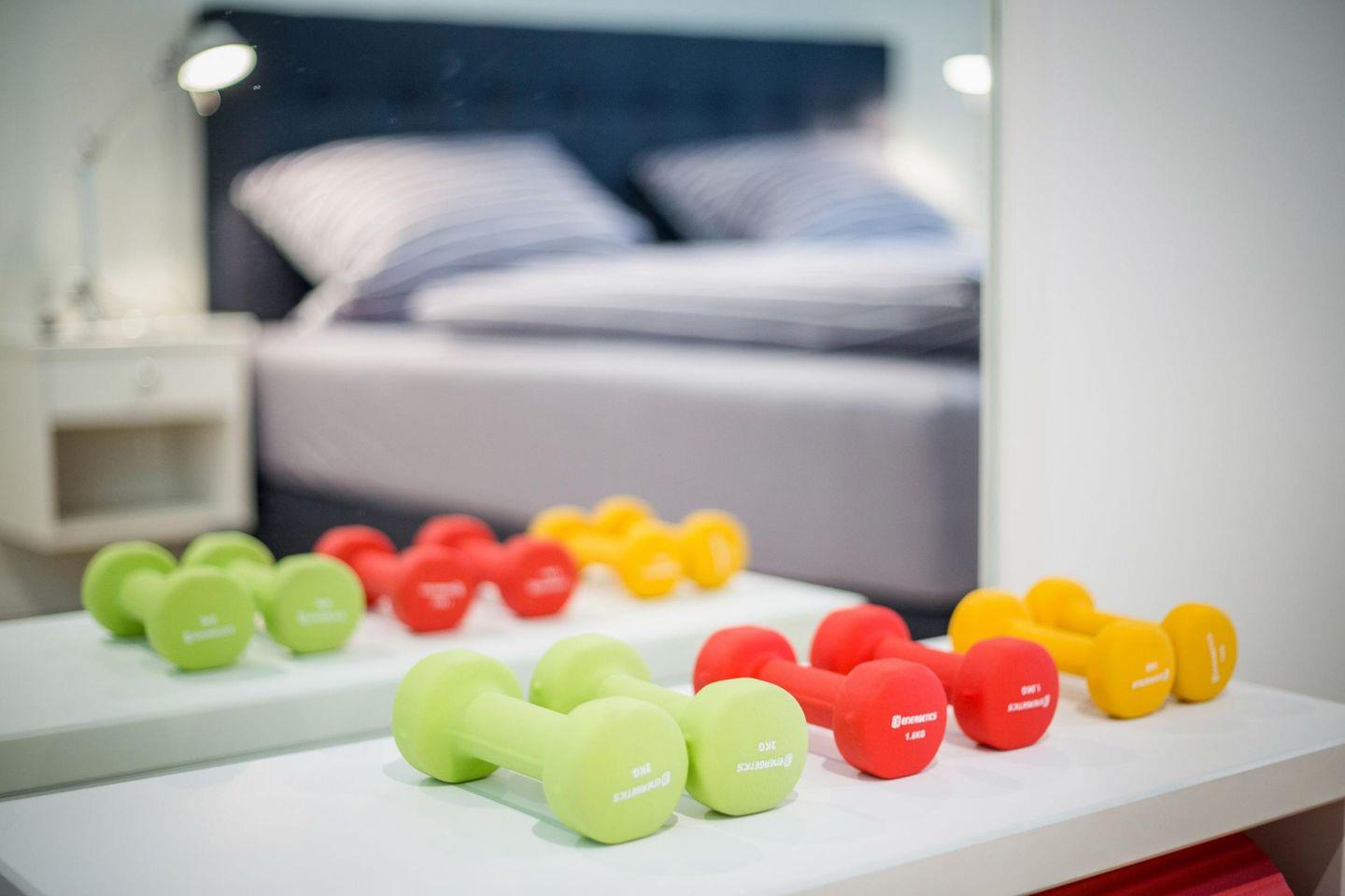 Das Haus bietet vier stilvoll eingerichtete Schlafzimmer, die jedem Gast eine komfortable und entspannte Nachtruhe ermöglichen. Das Hauptschlafzimmer verfügt über ein gemütliches Doppelbett (2x 80x200 cm) mit einem großen Einbauschrank für Ihre Garderobe und ist zusätzlich mit einem TV ausgestattet. Im zweiten Schlafzimmer finden Sie ebenfalls ein Doppelbett (2x 90x200 cm), einen Sessel sowie einen Safe im geräumigen Einbauschrank. Ein besonderer Pluspunkt ist der direkte Zugang zum privaten Südbalkon, ideal für ruhige Morgenstunden. Das dritte Schlafzimmer ist mit zwei bequemen Einzelbetten (je 90x200 cm) ausgestattet und bietet den perfekten Rückzugsort für Kinder oder Gäste. Im vierten Schlafzimmer wartet ein weiteres Doppelbett (2x 90x200 cm), ebenfalls mit einem TV, Sessel und einem Safe im Einbauschrank, auf Sie.