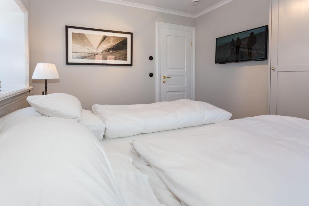 Das erste Schlafzimmer ist mit einem komfortablen Doppelbett (2x 90x200 cm), einem geräumigen Einbauschrank und einem TV ausgestattet und bietet viel Stauraum und Komfort. Das zweite Schlafzimmer, ausgestattet mit einem großzügigen Doppelbett (180x200 cm), verfügt ebenfalls über einen Kleiderschrank und TV und sorgt für entspannende Nächte.
