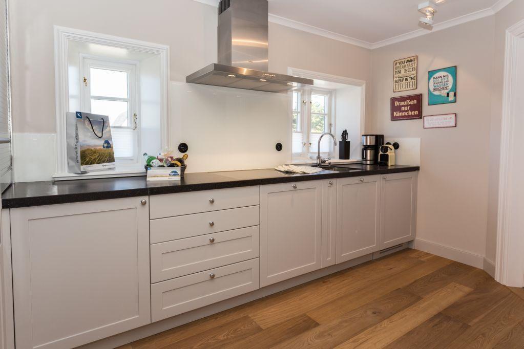 Die moderne, offene Küche ist mit einem Induktionsherd, Geschirrspüler und weiteren hochwertigen Geräten ausgestattet. Sie bietet alles, was Sie für die Zubereitung Ihrer Lieblingsgerichte benötigen und fügt sich harmonisch in den Wohnbereich ein.