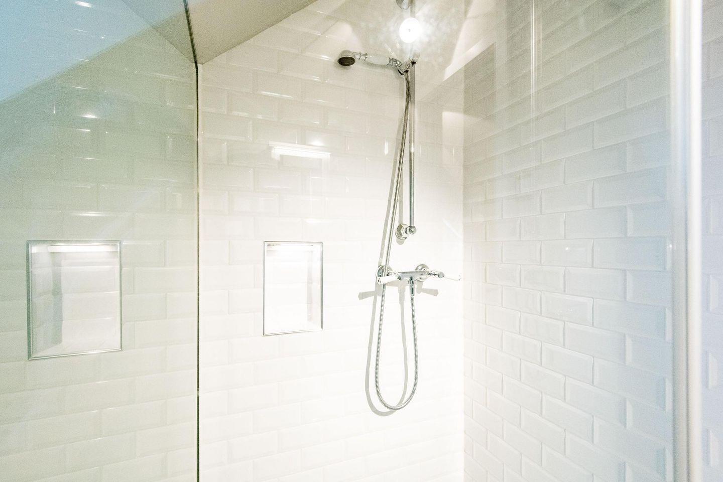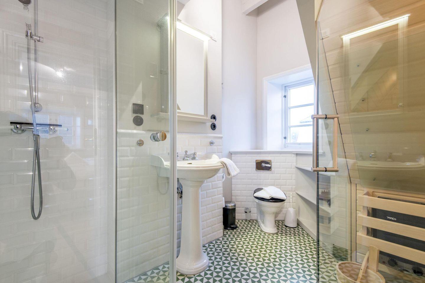 Das erste Badezimmer überzeugt mit einer ebenerdigen Dusche, WC, Handtuchwärmer, Föhn und einem Fenster, das für angenehmes Tageslicht sorgt. Ein weiteres Highlight ist die finnische Sauna – ideal für entspannte Stunden nach einem langen Strandtag. Das zweite Badezimmer bietet ebenfalls eine ebenerdige Dusche, WC, Handtuchwärmer und Tageslicht und rundet das luxuriöse Angebot ab.