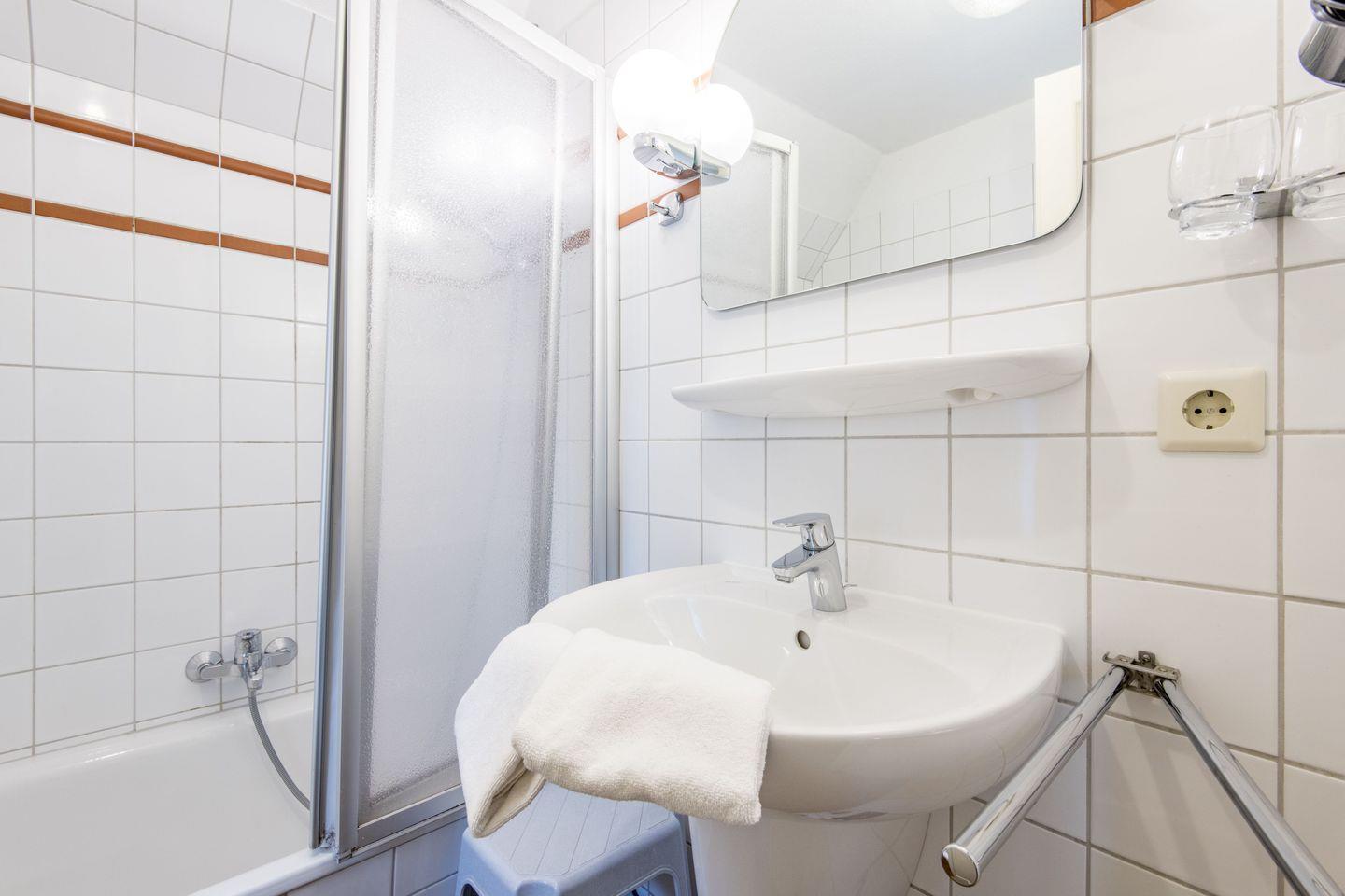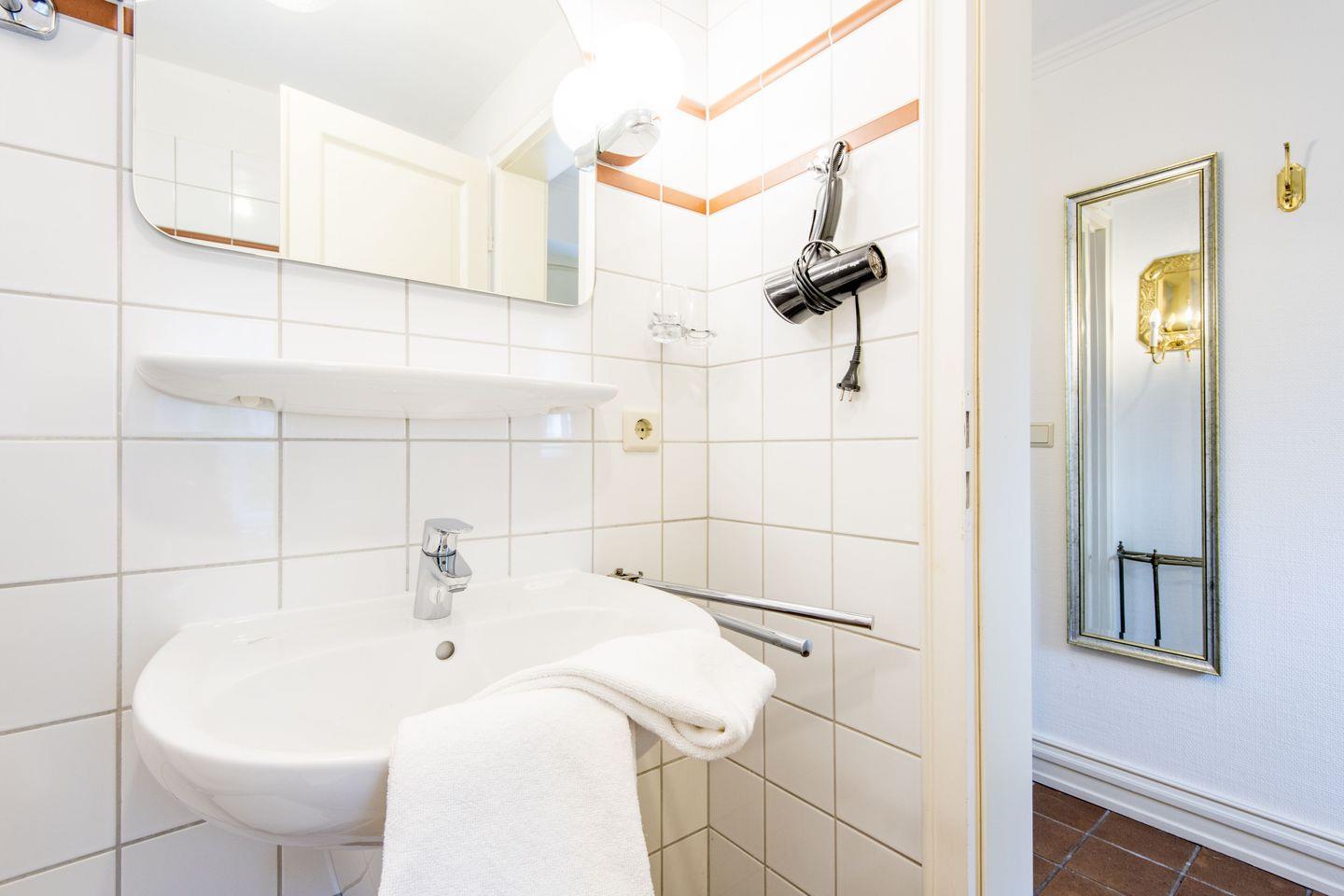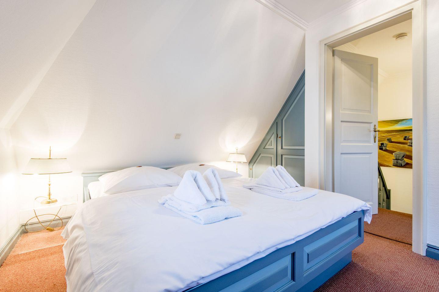 Das großzügige Hauptschlafzimmer ist mit einem Doppelbett (2x 80x200 cm) und maßgefertigten Tischlereinbauten eingerichtet. Ein zweites Schlafzimmer bietet ein gemütliches Einzelbett (90x190 cm), ebenfalls mit Tischlereinbauten, und ist damit ideal als erholsamer Rückzugsort. Das Badezimmer ist ein einladendes Wannenbad mit Tageslicht und bietet neben der Badewanne auch viel Platz für einen angenehmen Start in den Tag.