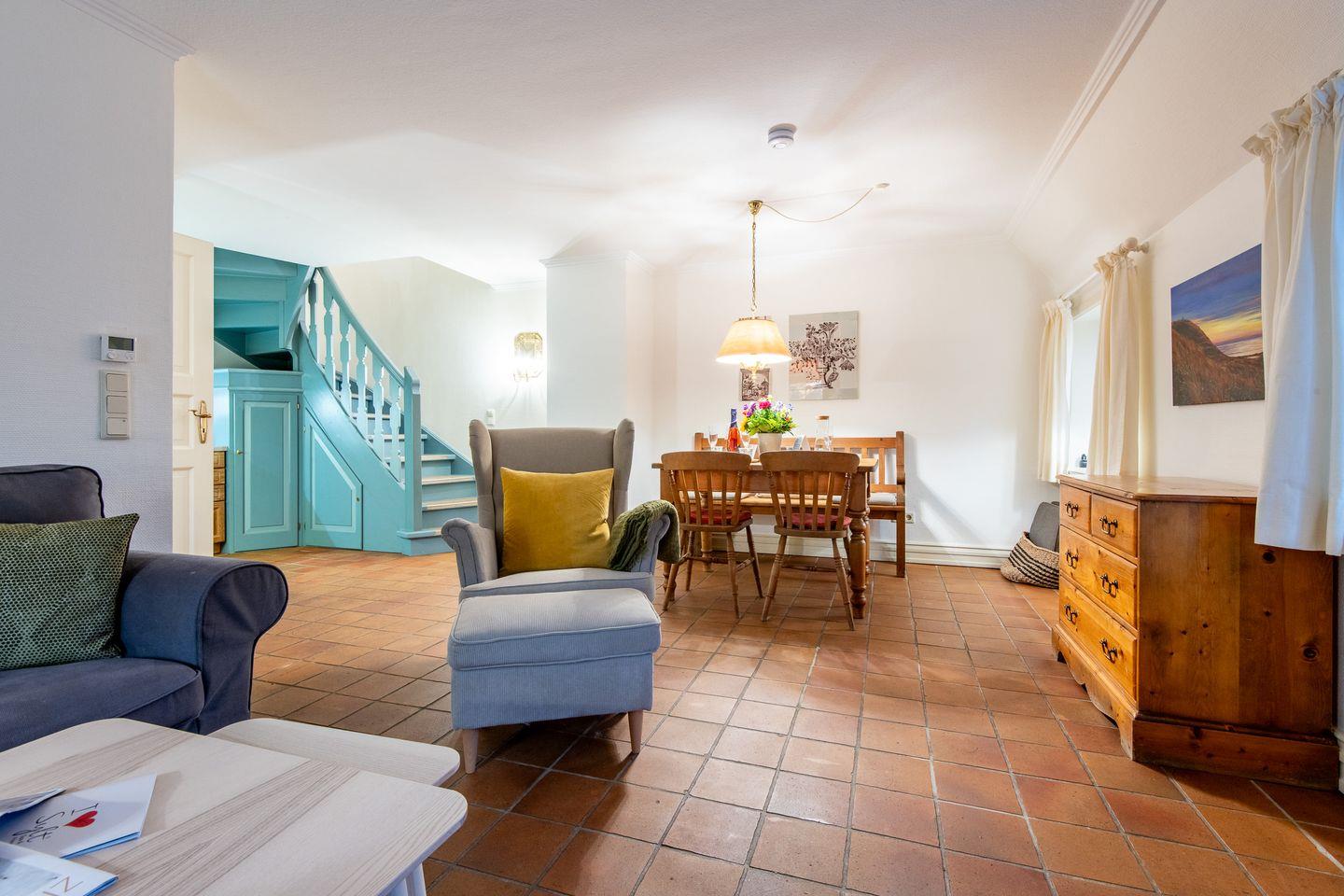 3-Zimmer-Ferienwohnung unter Reet auf 2 Ebenen (EG, OG) in Westerland mit ca. 70 qm für bis zu 3 Personen.