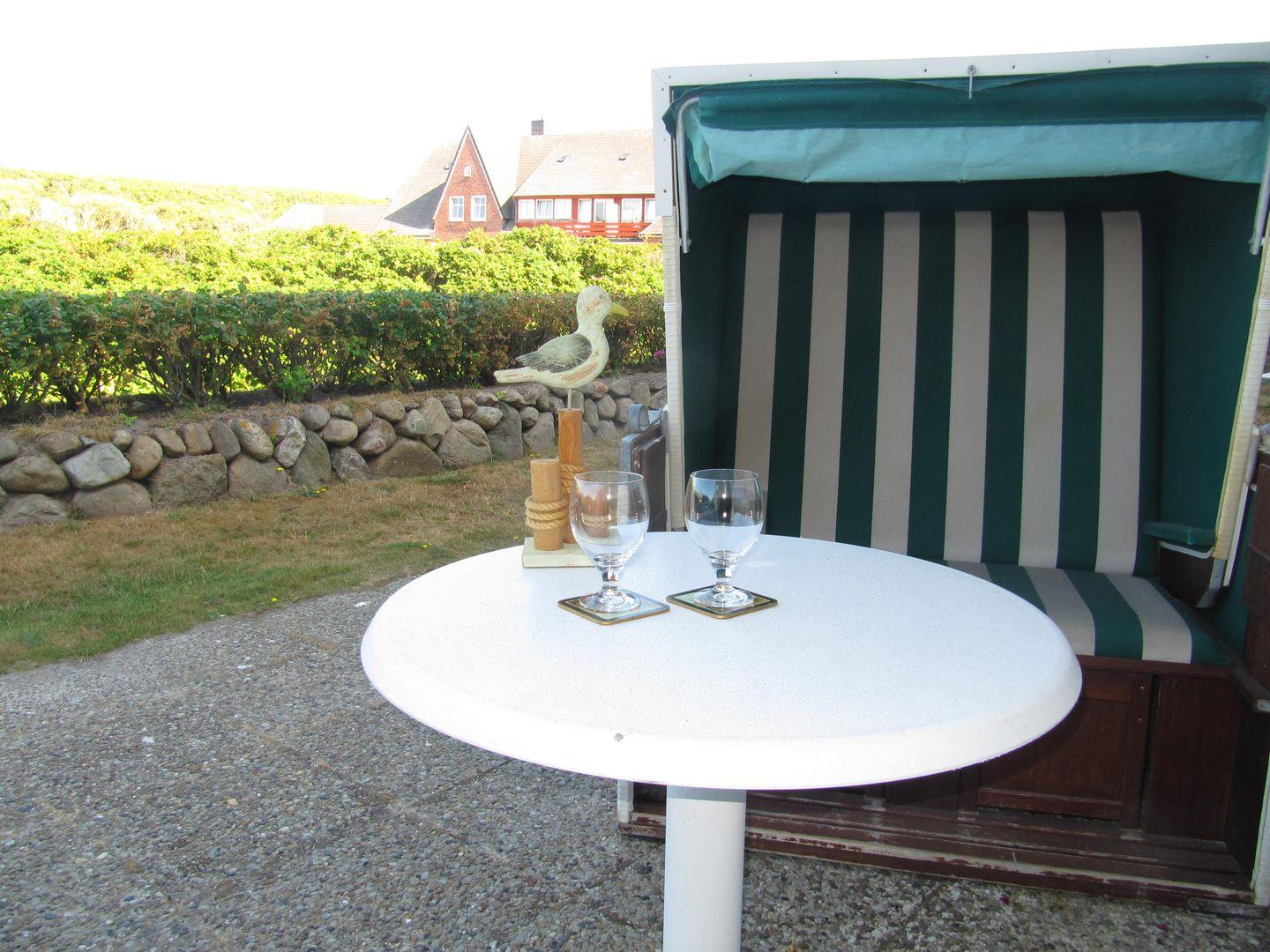 Ein besonderes Highlight der Unterkunft ist die großzügige Terrasse, auf der Sie entspannte Stunden mit Blick in den Garten verbringen können. Die Gartenmöbel stehen für Sie bereit, um das Frühstück im Freien oder ein Glas Wein beim Sonnenuntergang zu genießen. Für absolute Entspannung sorgt der Strandkorb, der Sie an warmen Sommertagen vor der Sonne schützt und Ihnen ein Gefühl von Urlaub verleiht.