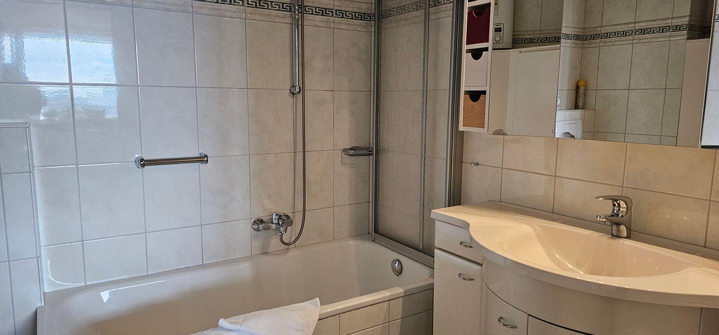 Die gut ausgestattete, geschlossene Küche bietet Ihnen alle Annehmlichkeiten, um köstliche Mahlzeiten selbst zuzubereiten. Sie finden hier Geräte wie einen Herd, Backofen, Mikrowelle, Kühlschrank sowie eine Spülmaschine, die Ihnen die Arbeit erleichtert. Für die Kaffee-Liebhaber ist ebenfalls eine Kaffeemaschine vorhanden, mit der Sie morgens Ihren Lieblingskaffee genießen können. Der Esstisch bietet ausreichend Platz für gemeinsame Mahlzeiten, und die bequemen Gartenmöbel auf dem Balkon laden dazu ein, die frische Luft und den Blick auf die Umgebung zu genießen.
