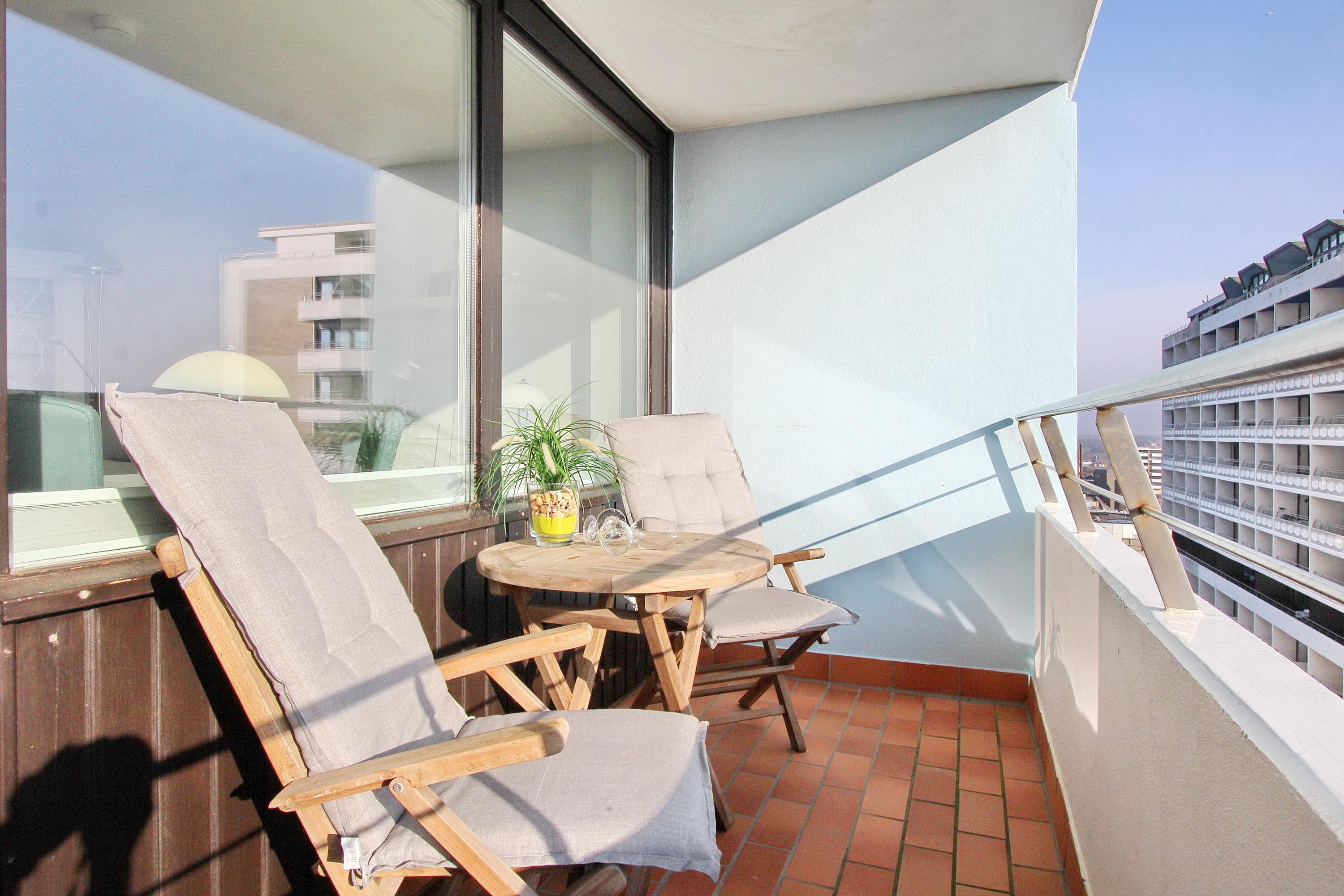 Nette und gemütliche Einzimmerwohnung in der 5. Etage im Haus Metropol mit Balkon zur Ostseite, die nur wenige Schritte vom Strand und Meer entfernt liegt. Der Wohn-Schlafraum verfügt über ein Doppelschrankbett, ein Sofa sowie einen Fernsehsessel und einen Essplatz am Fenster mit 3 Stühlen. Der Designfußboden in Holzoptik verleiht dem Raum Wärme und sorgt besonders für Allergiker für ein gutes Wohnklima. Im Badezimmer gibt es eine Dusche, einen Fön sowie einen Schrank mit viel Abstellfläche für ihre persönlichen Dinge. Zusätzlich gibt es ein Bügeleisen sowie ein Bügelbrett. Die Küchenzeile im Flur verfügt über einen Geschirrspüler, ein Ceranfeld mit 4 Kochplatten und eine Mikrowelle. Zur technischen Ausstattung gehört ein Flachbildfernseher, ein Radio mit CD Player, eine Funkwetterstation und ein Telefon. Ein freies WLAN Netzwerk (WEG Haus Metropol - Passwortfrei - ohne Gewähr) steht ihnen kostenfrei zur Verfügung. Wohnungsgröße: ca. 30 m².