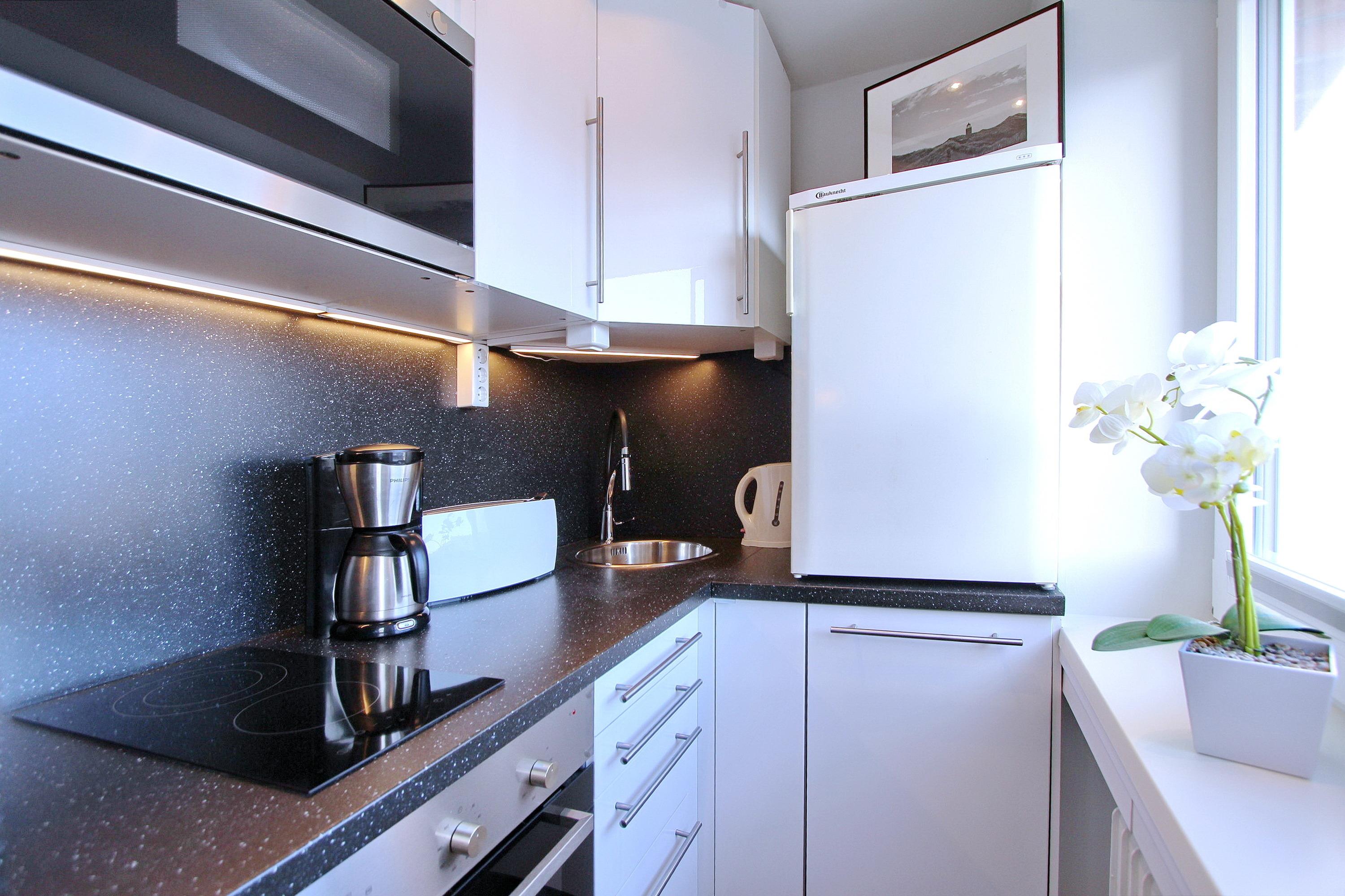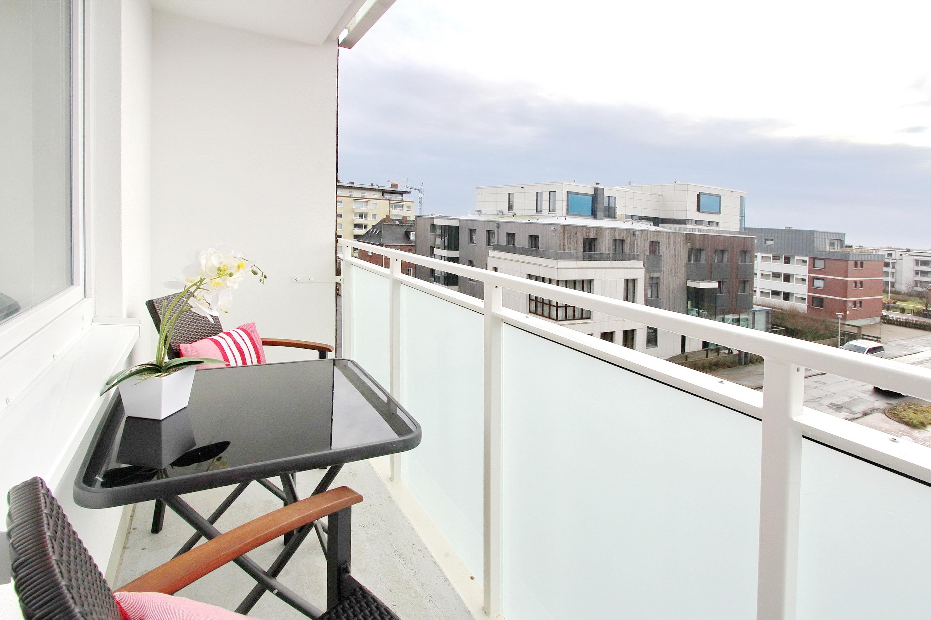 Modern eingerichtete 2 Zimmer-Wohnung im Stadtzentrum von Westerland. Sie befindet sich in der 3. Etage zur Südseite in einem mehrstöckigen Appartementhaus in unmittelbarer Nähe des Hauptstrandes - vom Südbalkon kann man einen kleinen Blick auf die Nordsee genießen. Der Wohnraum ist mit einer gemütlichen Couch, einem Ohrensessel und einem großen Smart-TV ausgestattet. Durch ein Schiebetürsystem ist der Wohn- vom Schlafbereich getrennt. Der Schlafbereich verfügt über ein Doppelschrankbett - im gleichen Raum befindet sich ein Essplatz mit 4 Stühlen. Die separate weiße Hochglanz-Einbauküche verfügt über ein Cerankochfeld mit 2 Platten, einem Backofen, einem Geschirrspüler und einer Mikrowelle. Der Eigentümer verfügt über einen eigenen Internet-Anschluss (Zugangsdaten in der Wohnung), den Sie kostenfrei nutzen können. Nichtraucherwohnung. Haustiere nicht gestattet. Wohnungsgröße 45 m².