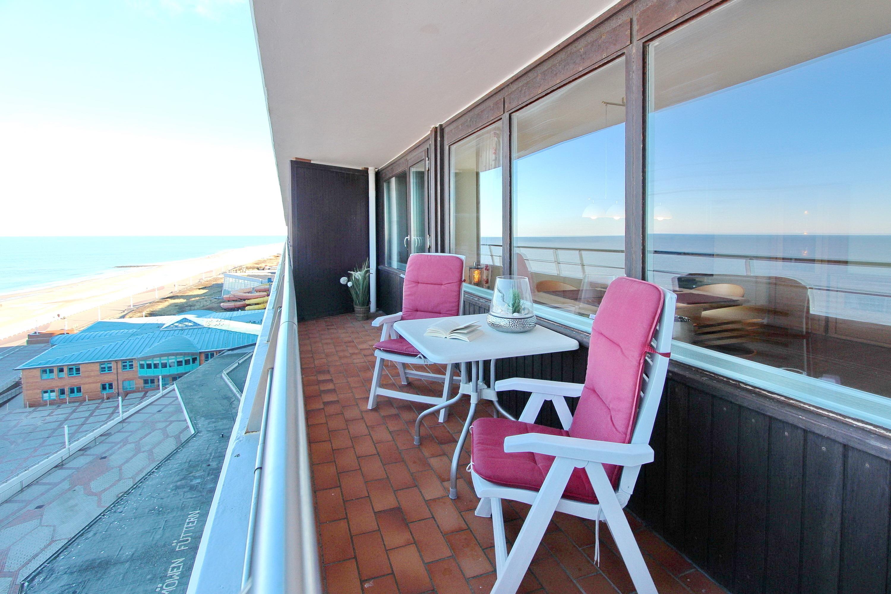 Hell und freundlich eingerichtete 2 Zimmer Wohnung in der 7. Etage im Haus Metropol für 1-4 Personen mit herrlichem Blick über den Strand und die Nordsee. Das Wohnzimmer mit vorgelagertem Westbalkon (Balkonmöbel vorhanden) hat eine bequeme Couch mit Schlaffunktion, einen Fernsehsessel, eine Schrankwand und einen Essplatz am Fenster mit 4 Stühlen. Das Schlafzimmer (mit kleinem Westbalkon) mit feststehendem Doppelbett hat eine begehbaren Kleiderschrank sowie eine Wohlfühlecke mit Relaxsessel. Im Badezimmer gibt es eine Dusche. Die separate Küche mit Geschirrspüler, Ceranfeld, Mikrowelle und Backofen lässt keine Wünsche offen. Zur technischen Ausstattung der Wohnung gehört ein Flachbildfernseher, Bluray-Player, Bluetooth Soundsystem inkl. Radio und CD Spieler. Ein freies WLAN Netzwerk (WEG Haus Metropol - Passwortfrei - ohne Gewähr) steht ihnen kostenfrei zur Verfügung. Ein nicht funktionierender Internetanschluss stellt keinen Mietminderungsgrund dar. Laut Eigentümer ist diese Nichtraucherwohnung Hausstauballergiker geeignet. Wohnungsgröße: ca. 67 m².