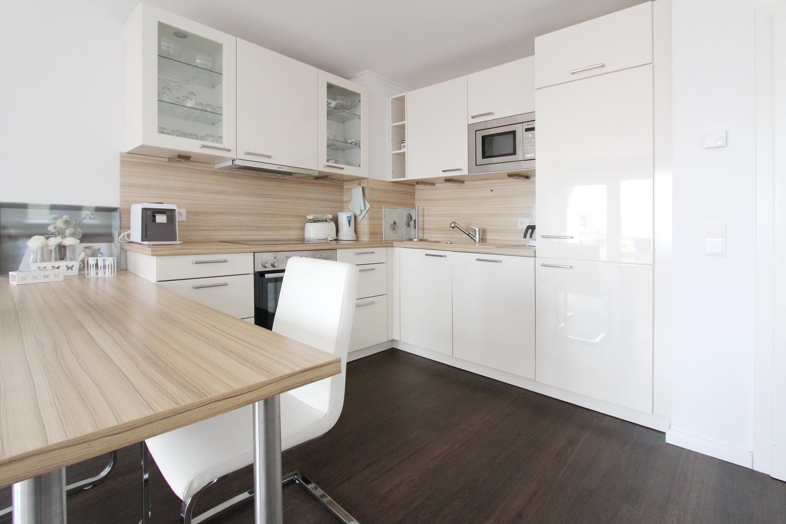 Gemütliche 2 Zimmerwohnung in der 3. Etage im Haus Westerhörn im Beach House Stil wenige Schritte vom Strand entfernt. Hell und freundlich eingerichteter Wohnraum mit vorgelagertem Westbalkon, kleines "Meerblickchen" inklusive. In der Wohnung steht ihnen eine große Couch und ein Fernsehsessel zur Verfügung, sowie ein Schreibtisch zum erledigen ihrer Urlaubspost und ein Essplatz mit 2 Stühlen. In der offenen Küchenbar mit Backofen, Ceranfeld, Mikrowelle, zusätzlicher Kaffeekapselmaschine und Spülmaschine können sie sich selbst verpflegen. Das separate Schlafzimmer verfügt über ein Doppelbett und einen großen Kleiderschrank mit viel Stauraum. Designfussboden in Holzoptik wurde in der ganzen Wohnung verlegt. Im hellen Badezimmer gibt es eine Dusche und einen Handtuchtrockner. Zur technischen Ausstattung der Wohnung gehört: ein Flachbildfernseher, ein DVD Player, eine IPod Station und ein Radio. Freies WLAN ist kostenfrei vorhanden (die Zugangsdaten stehen auf der Telekom Speedbox). Wohnungsgröße: ca. 45 m².