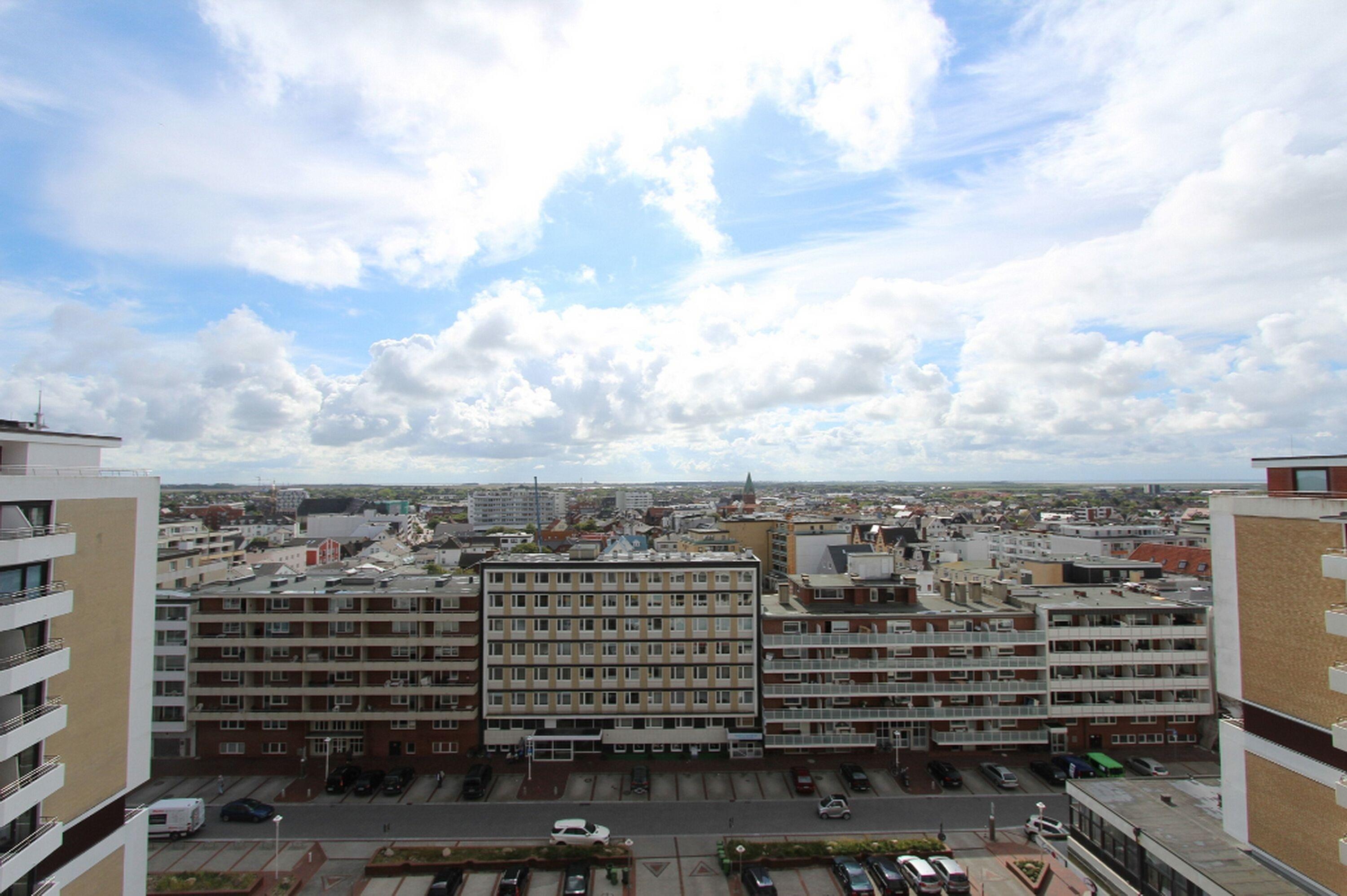 Hübsche Einzimmerwohnung in der 8. Etage im Haus Metropol zur Landseite mit herrlichem Weitblick über die Insel und die Stadt. Bei klarem Wetter auf das nordfriesische Wattenmeer bis zum Festland. Der kombinierte Wohn-/Schlafraum mit vorgelagertem großen Ostbalkon verfügt über Einzelschrankbetten, einen Essplatz mit 2 Stühlen am Fenster sowie eine Sitzgruppe. Holzfußboden verleiht dem Raum Gemütlichkeit. Das moderne Badezimmer hat eine Dusche. Im Flur befindet sich eine Einbauküche mit Backofen in der sich sie sich bequem selbst verpflegen können. Zur technischen Ausstattung gehört: ein Flachbildfernseher mit integriertem DVD Player, Radio mit IPod Station, Telefon. Ein freies WLAN Netzwerk (WEG Haus Metropol - Passwortfrei - ohne Gewähr) steht ihnen kostenfrei zur Verfügung. Wohnungsgröße 30 m².