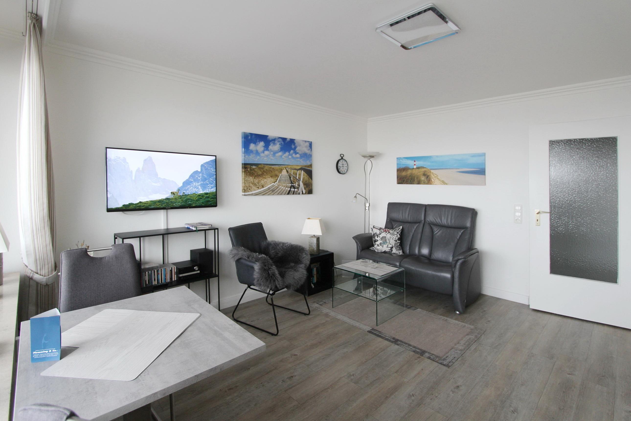 Hell und freundlich eingerichtetes Appartement in der 8. Etage im Haus Metropol mit herrlichem Weitblick über die Insel und die Stadt Westerland. Bei klarem Wetter können Sie sogar das nordfriesische Wattenmeer und das Festland sehen. Der mit viel Liebe zum Detail eingerichtete Wohn-/Schlafraum mit vorgelagertem, großen Ostbalkon verfügt über bequeme Einzelschrankbetten, einen Essplatz am Fenster mit 2 Stühlen, sowie eine Ledercouch. Der Designfußboden in der Wohnung ist nicht nur optisch ansprechend, sondern erzeugt ein Wohnklima, dass auch für Allergiker geeignet ist. Das helle und moderne Badezimmer mit Dusche ist eine kleine Wohlfühloase. Ausreichend Stauraum für Ihre persönlichen Dinge ist vorhanden. In der Einbauküche im Flur gibt es einen Geschirrspüler, ein Ceranfeld und eine Mikrowellen/Backkombination. Zur technischen Ausstattung der Wohnung gehört: ein Smartfernseher, eine Stereoanlage und diverse CDs und Bücher sind vorhanden. Ein freies WLAN Netzwerk (WEG Haus Metropol - Passwortfrei - ohne Gewähr) steht ihnen kostenfrei zur Verfügung. Die Größe dieser Nichtraucherwohnung ist ca. 30 m².