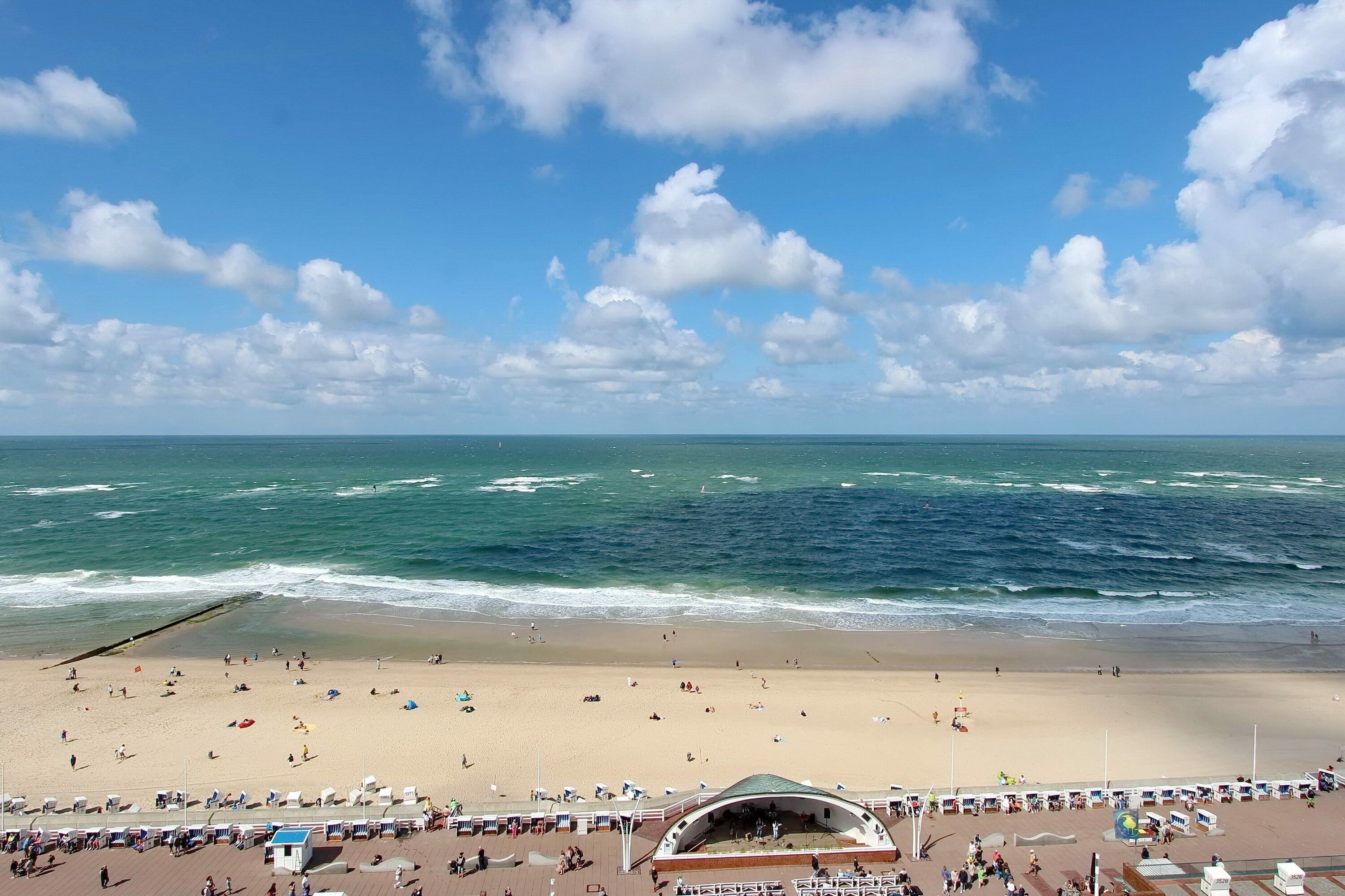 Kleine, aber mit viel Liebe zum Detail eingerichtete Einzimmerwohnung in der 9. Etage im Haus Metropol mit wunderschönem Strand- und Nordseeblick. Der kombinierte Wohn-/Schlafraum mit vorgelagertem Westbalkon ist eingerichtet mit Einzelschrankbetten, Designfussboden, 2 Sitzercouch mit Wohn-Esstisch und Fernsehsessel. Auf dem Balkon gibt es zwei Hochlehnerstühle mit Auflagen und einen Tisch. Das Badezimmer hat eine Dusche mit festem Haltegriff und Hocker. In der Einbauküche mit Mikrowelle, Ceranfeld (2 Platten) und Geschirrspüler können sie sich selbst verpflegen. Zur technischen Ausstattung gehört: ein Smart- TV mit integriertem Radio und eine Bluetoothanlage mit CD Player. Ein freies WLAN Netzwerk (WEG Haus Metropol - Passwortfrei - ohne Gewähr) steht ihnen kostenfrei zur Verfügung. Diese Nichtraucherwohnung hat eine Größe von ca. 25 m².