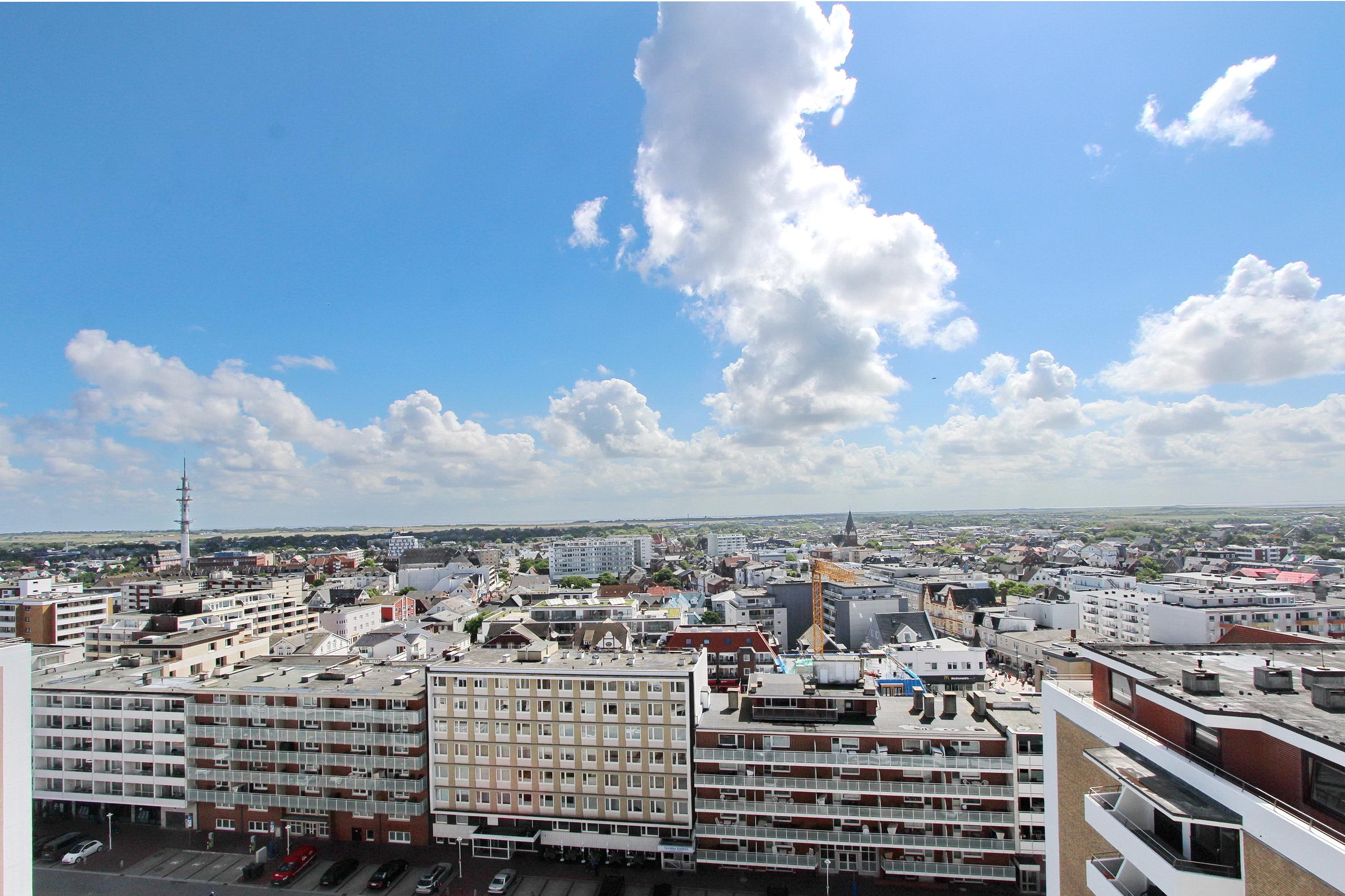Diese Einzimmerwohnung in der 11. Etage im Haus Metropol hat einen wunderbaren Blick über die Insel Sylt und die Westerländer Innenstadt. Vom Balkon aus (ausgestattet mit 2 Stühlen und einem Tisch) können Sie jeden Morgen einen tollen Sonnenaufgang genießen. Der kombinierte Wohn-Schlafraum ist mit 2 Einzelschrankbetten, einem Sessel mit Fusshocker und einem Essplatz mit 2 Stühlen eingerichtet. Die große Schrankwand bietet viel Platz für Ihre persönlichen Dinge und im Safe können Wertsachen sicher aufbewahrt werden. In der modernen und ganz neuen Küche im Flur, mit Mikrowellen-Backkombination, Geschirrspüler, 2 Platten Ceranfeld und zusätzlicher Nespressomaschine, können Sie sich selbst verpflegen. Das Badezimmer in weiß/blau hat eine Dusche mit Glastrennwand, einen Handtuchhalter, Schminkspiegel, mobilen Haltegriff und einen Fön. Zur technischen Ausstattung dieser Nichtraucherwohnung gehört: ein 32 Zoll Fernseher von Panasonic, eine Bluetoothanlage von Sony mit CD Spieler und der passwortfreie WLAN Netzwerk (WEG Haus Metropol - Passwortfrei - ohne Gewähr) kann genutzt werden. Für die "kleinen" Syltgäste gibt es eine extra Spielzeugkiste und eine Toniebox mit Hörspiel- und Kreativtonies. Diese, mit viel Liebe zum Detail eingerichtete, Wohnung ist ca. 23m² groß.