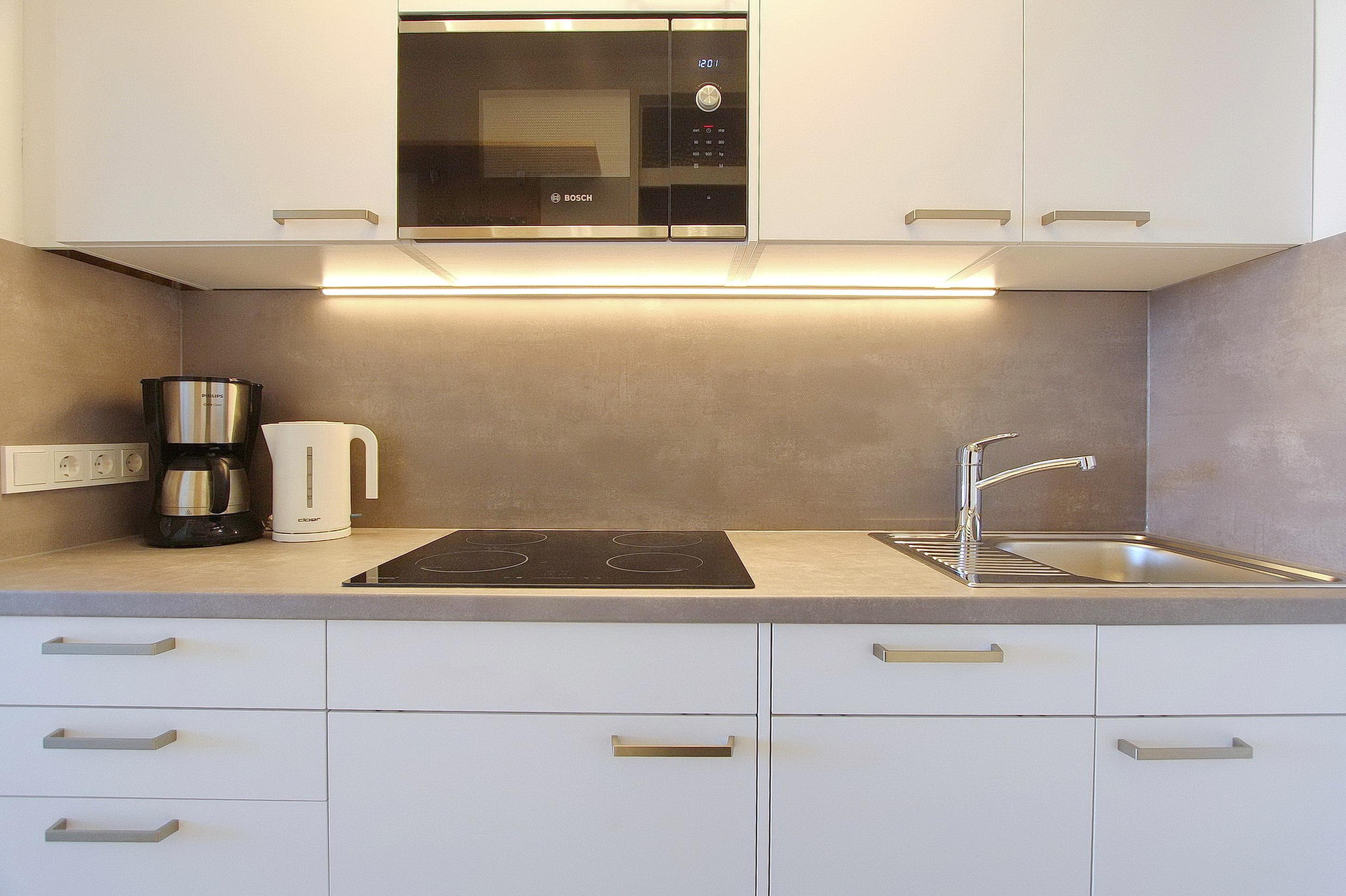 Diese hell und freundlich eingerichtete Einzimmerwohnung befindet sich in der 4. Etage des Haus Metropol. Der Meeresblick ist frei und unverbaut und sie können vom Frühstückstisch am Fenster auf den Strand schauen. Der Wohn-Schlafraum ist mit Design Fussboden in Holzoptik ausgelegt und verfügt über eine komfortable Schlafcouch und einen großen Kleiderschrank mit viel Stauraum. Das Badezimmer hat eine Dusche und ein Fön ist vorhanden. Eine kleine Küchenzeile befindet sich im Flur. Zur technischen Ausstattung dieser Nichtraucherwohnung gehört: ein Flachbildfernseher, ein Telefon mit Flatrate ins dt. Festnetz, ein Wecker und ein Bluetoothanlage mit CD Player von Sony. Der Eigentümer verfügt über einen eigenen Internetanschluss (Zugangsdaten in der Wohnung) den Sie kostenfrei nutzen können. Arbeiten, streamen etc. alles kein Problem in dieser ca. 25 m² großen Nichtraucherwohnung.