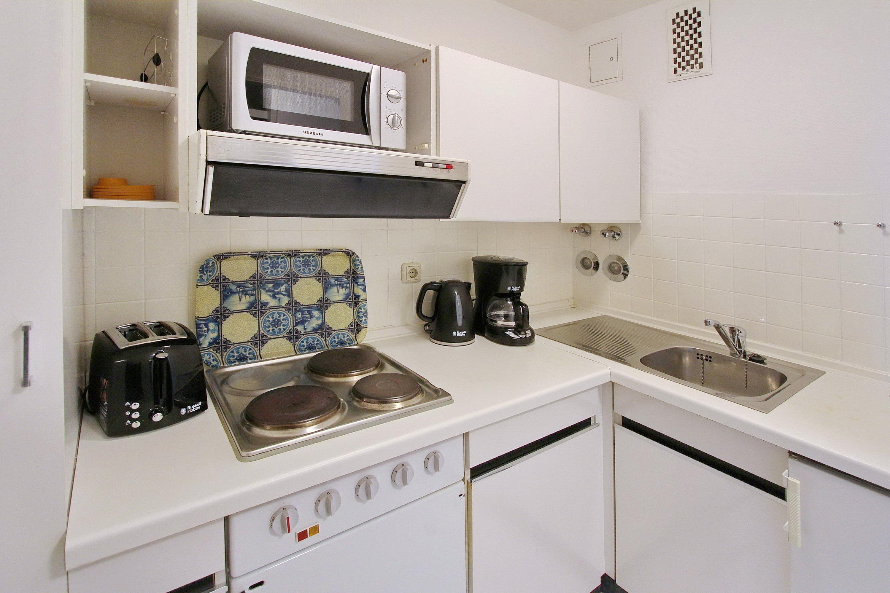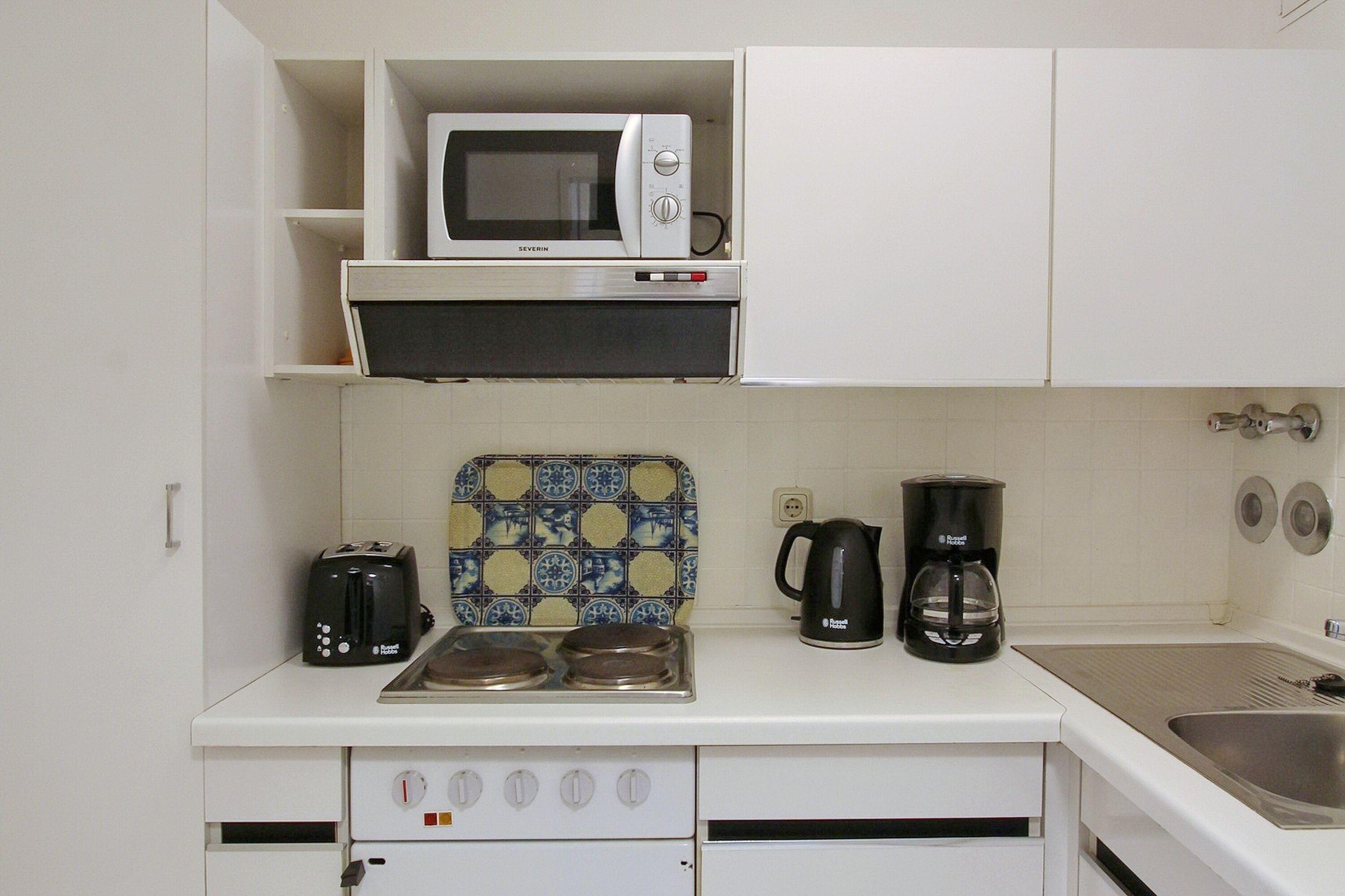 Einzimmerwohnung in der 4. Etage im Haus am Meer. Nur ein kurzer Spaziergang trennt Sie von der Nordsee und der Westerländer Promenade. Der kombinierte Wohn-/Schlafraum mit vorgelagertem Ostbalkon (Balkonmöbel für 2 Personen sind vorhanden) ist ausgestattet mit einem feststehenden Bett (1 Matratze), einem Essplatz am Fenster mit 2 Stühlen, einem Kleiderschrank und einer Ledercouch. Die Wände sind hell gestrichen, der Boden ist heller Designbelag und die Bilder mit Syltmotiven sorgen für einen maritimen Flair in der Wohnung. Das hell geflieste Badezimmer hat eine Dusche und einen Handtuchtrockner. In der separaten Küche mit Dunstabzugshaube und Mikrowelle können Sie kleine Mahlzeiten zubereiten. Zur technischen Ausstattung dieser Wohnung gehört: ein Flachbildfernseher und eine Stereoanlage mit CD Spieler. Kostenfreier Zugang zum WLAN Hot Spot (WEG Haus am Meer - Passwortfrei - ohne Gewähr) ist vorhanden. Wohnungsgröße: ca. 38 m².