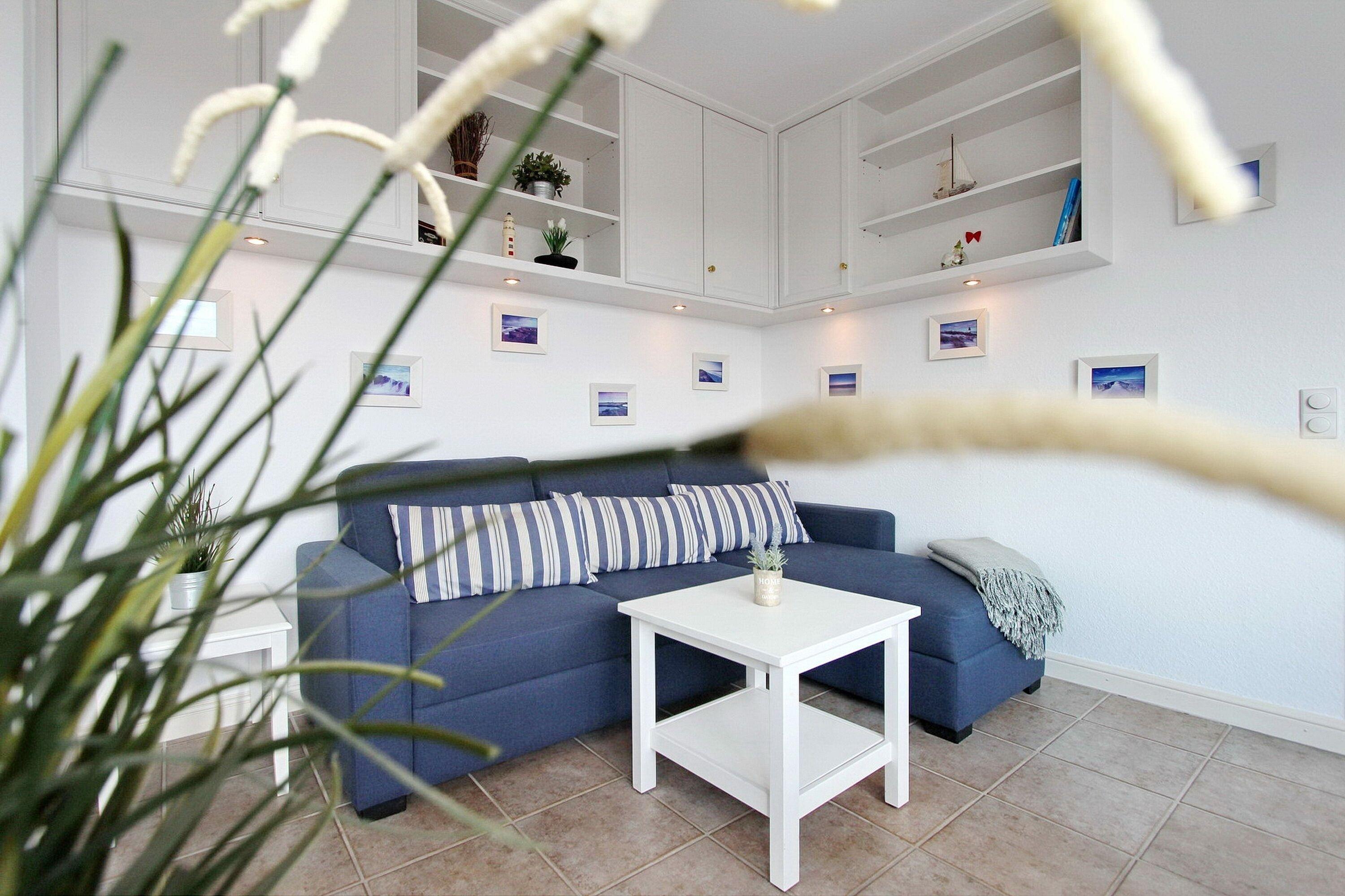 Hell und freundlich eingerichtete Zweizimmerwohnung im Haus Margaretheneck in der 3. Etage im Haus Margaretheneck mit vorgelagertem Südbalkon. Wenn die Sonne scheint, können Sie hier auf Teakholzmöbeln wunderbar entspannen und das Meer ist so nah, dass sie ein klitzekleines Stück sehen und es auf jeden Fall hören können. Im lichtdurchfluteten Wohnzimmer gibt es eine große Eckcouch mit Schlaffunktion, einen Essplatz am Fenster mit 4 Stühlen, sowie eine Kommode und einen Einbauschrank. Stauraum für Ihre persönlichen Dinge ist ausreichend vorhanden. In der ganzen Wohnung wurden helle Fliesen verlegt. Das Schlafzimmer verfügt über 2 Einzelbetten (auseinander stehend) und eine Kommode sowie einen Sessel. In der separaten Küche mit Geschirrspüler, zusätzlicher Nespressomaschine und Backofen können sie sich selbst verpflegen. Im Badezimmer gibt es eine Badewanne, einen Badezimmerhocker und einen mobilen Haltegriff, der für mehr Sicherheit beim Ein- und Aussteigen sorgt. Fön und Kosmetikspiegel sind ebenfalls vorhanden. Zur technischen Ausstattung gehört ein Flachbildfernseher und ein Bose Radio. Vierbeinige Sylturlauber sind herzlich willkommen. Wohnungsgröße: ca. 48 m².