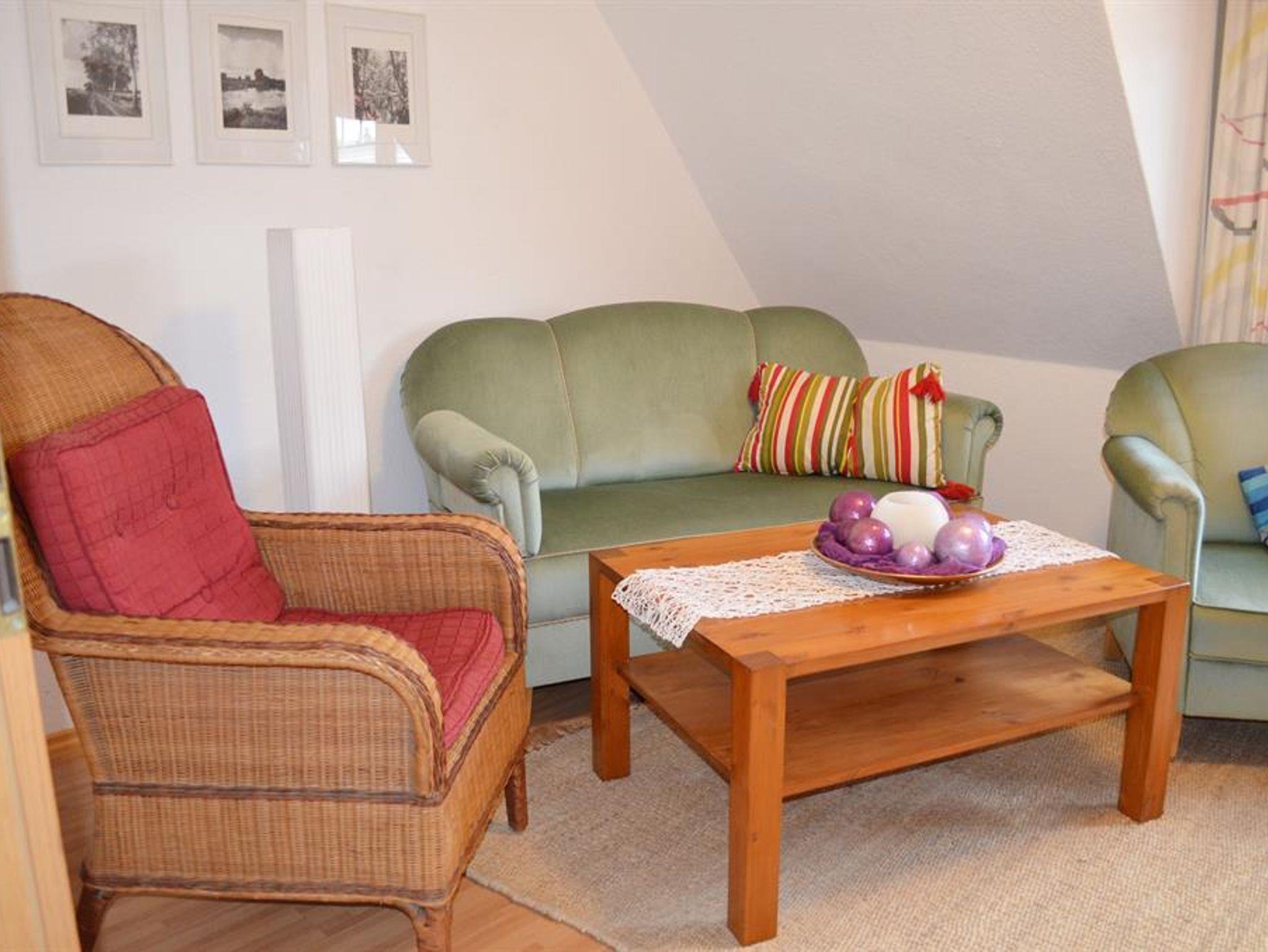 Die gemütliche und komfortable Ferienwohnung ist im Obergeschoss des Hauses. Sie ist komplett eingerichtet und verfügt über einen separaten Eingang. Auf insgesamt 50 qm Wohnfläche gehören 1 Wohnzimmer, 2 Schlafzimmer sowie Küche und Dusche/WC zu ihrem ganz persönlichen Bereich. Eine Mikrowelle, Geschirrspüler,Waschtrockner, Kaffeemaschine etc., Radio und Satelliten-TV sorgen für Komfort und Unterhaltung. Handtücher und Bettwäsche werden selbstverständlich gestellt. Für selbstmitgebrachte Gegenstände wird keine Haftung übernommen!