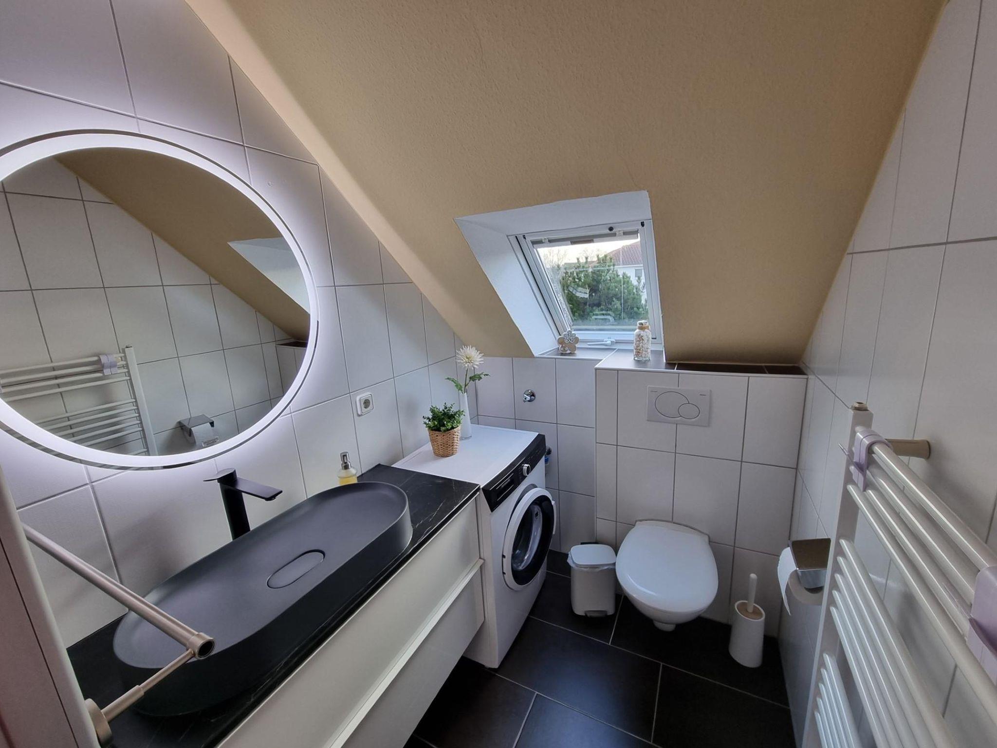 Besonders praktisch ist die Waschmaschine im Bad, die man einfach so benutzen kann.
