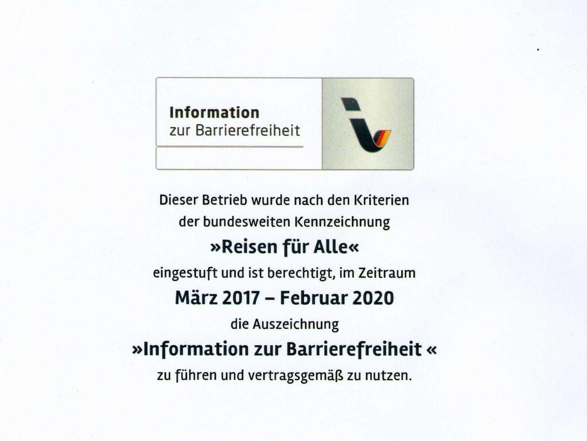 Wir bieten Ihnen eine komplett ausgestattete, gepflegte Ferienwohnung für 2 bis 4 Personen. Die Wohnung ist 65 qm groß und hat eine kleine überdachte Terrasse, sowie einen PKW-Stellplatz. Sie ist ebenerdig und behindertengerecht. Seit 2017 liegt die die Auszeichnung Information zur Barrierefreiheit vom Deutschen Seminar für Touristik (DSFT) vor.