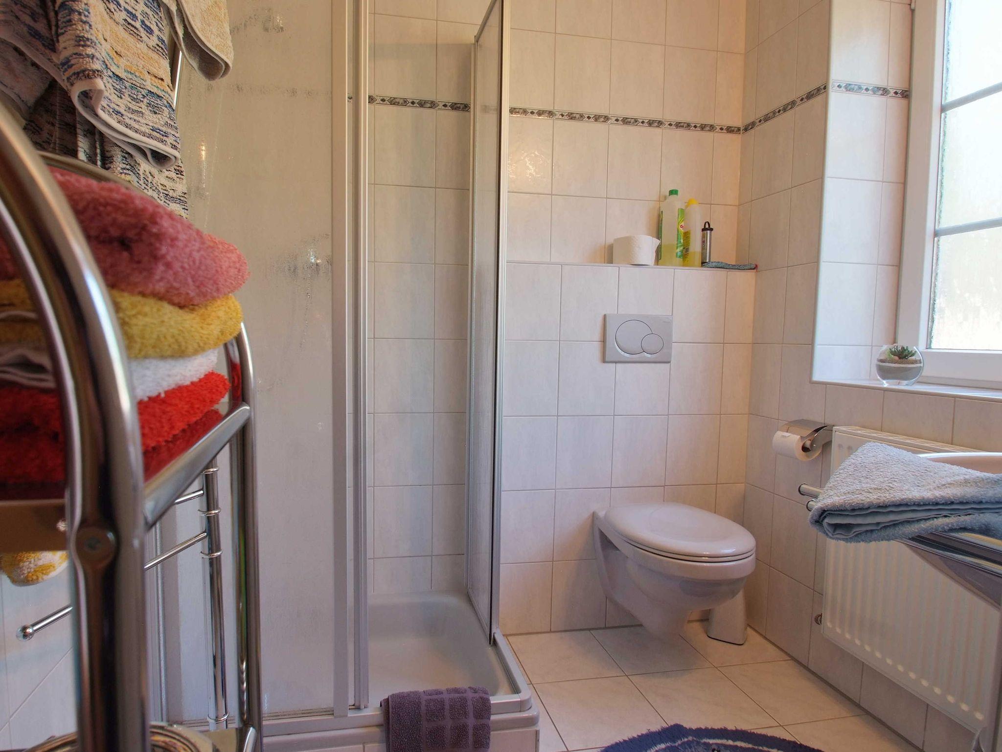 Bad mit Dusche und WC. Separates WC. Schlafzimmer mit großem Kleiderschrank. Kinderzimmer mit 2 separat stehenden Betten, Kleiderschrank. Wohnzimmer mit Doppelschlafsofa. 2 Fernsehsessel. Babybett auf Anfrage. Offene Küche. mit Spülmaschine, Gefrierbox. Esstisch. Großer Abstellraum. Fliegengitter. Bettwäsche, Handtücher, Endreinigung inkl. Terrasse mit Möbeln, Grill, E-Rad -Lademöglichkeit und abschließbarer Hütte zum Einschließen von Fahrrädern. Parkplatz direkt am Haus mit E-Ladestation.