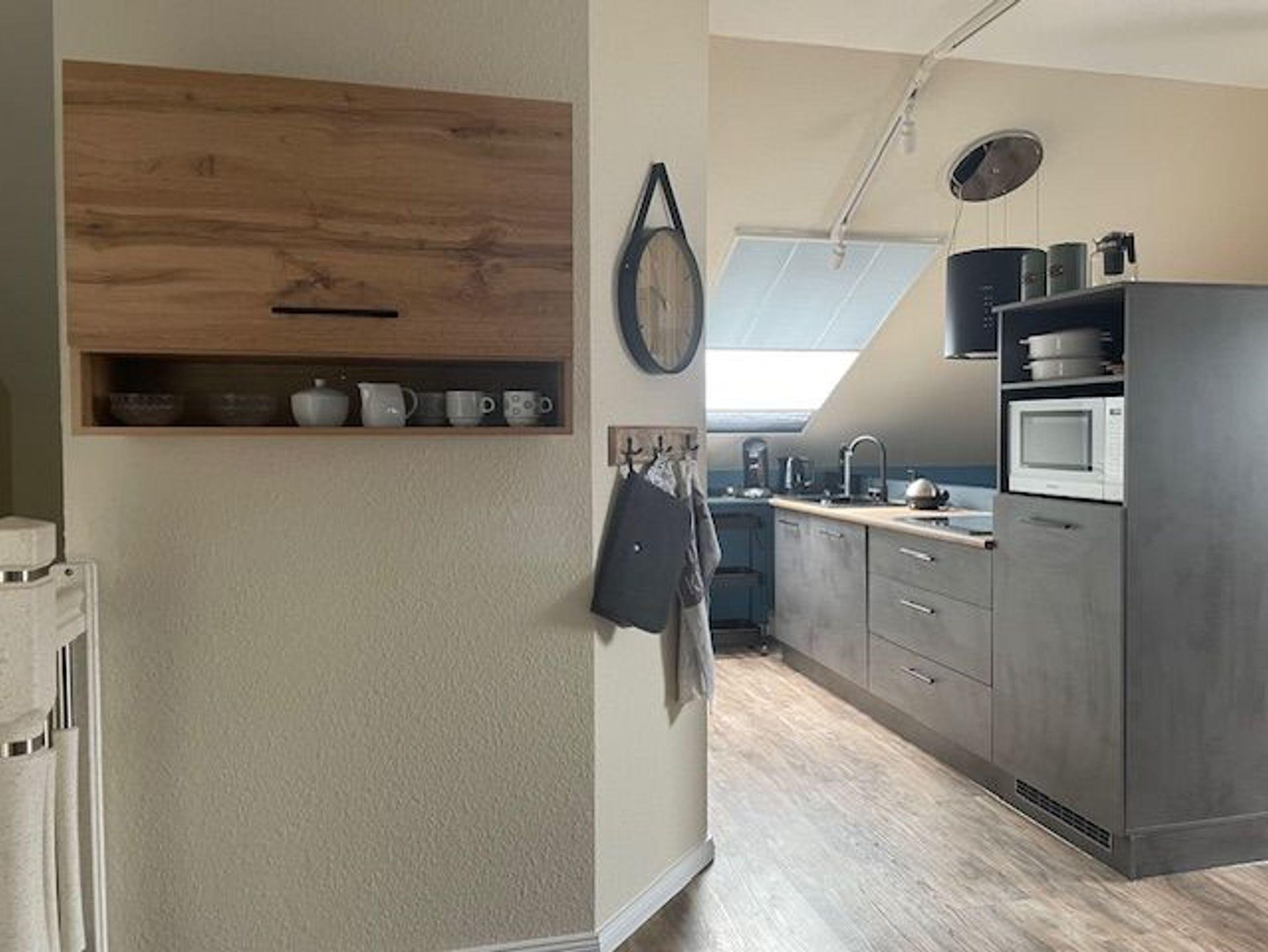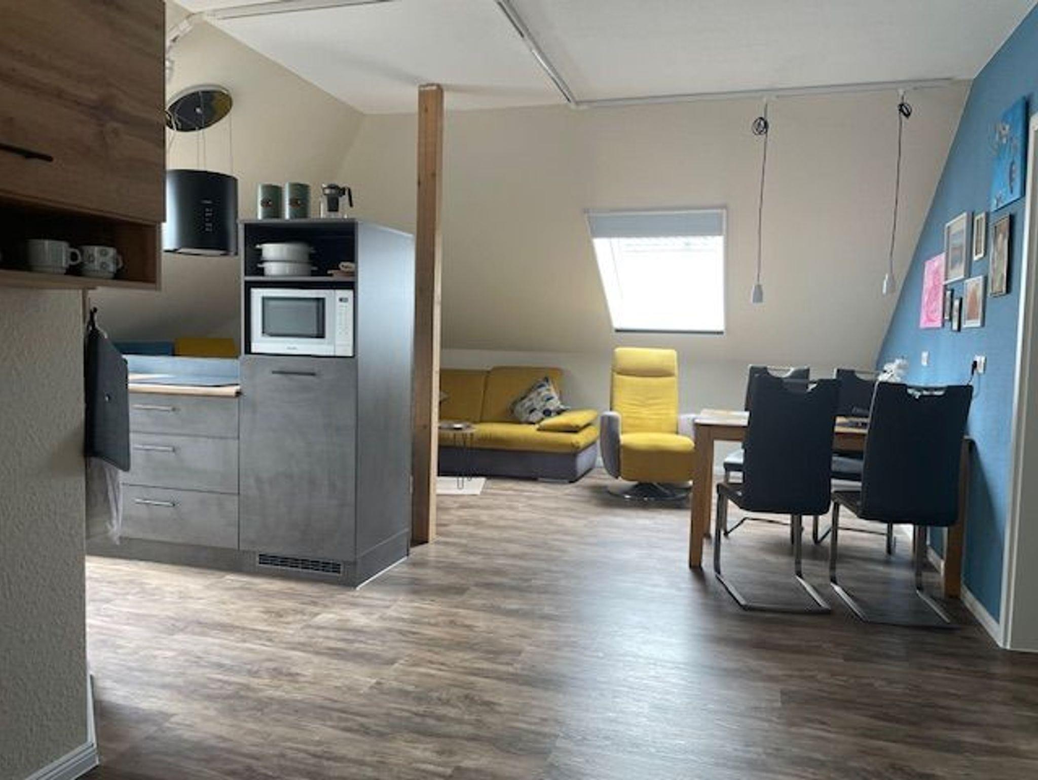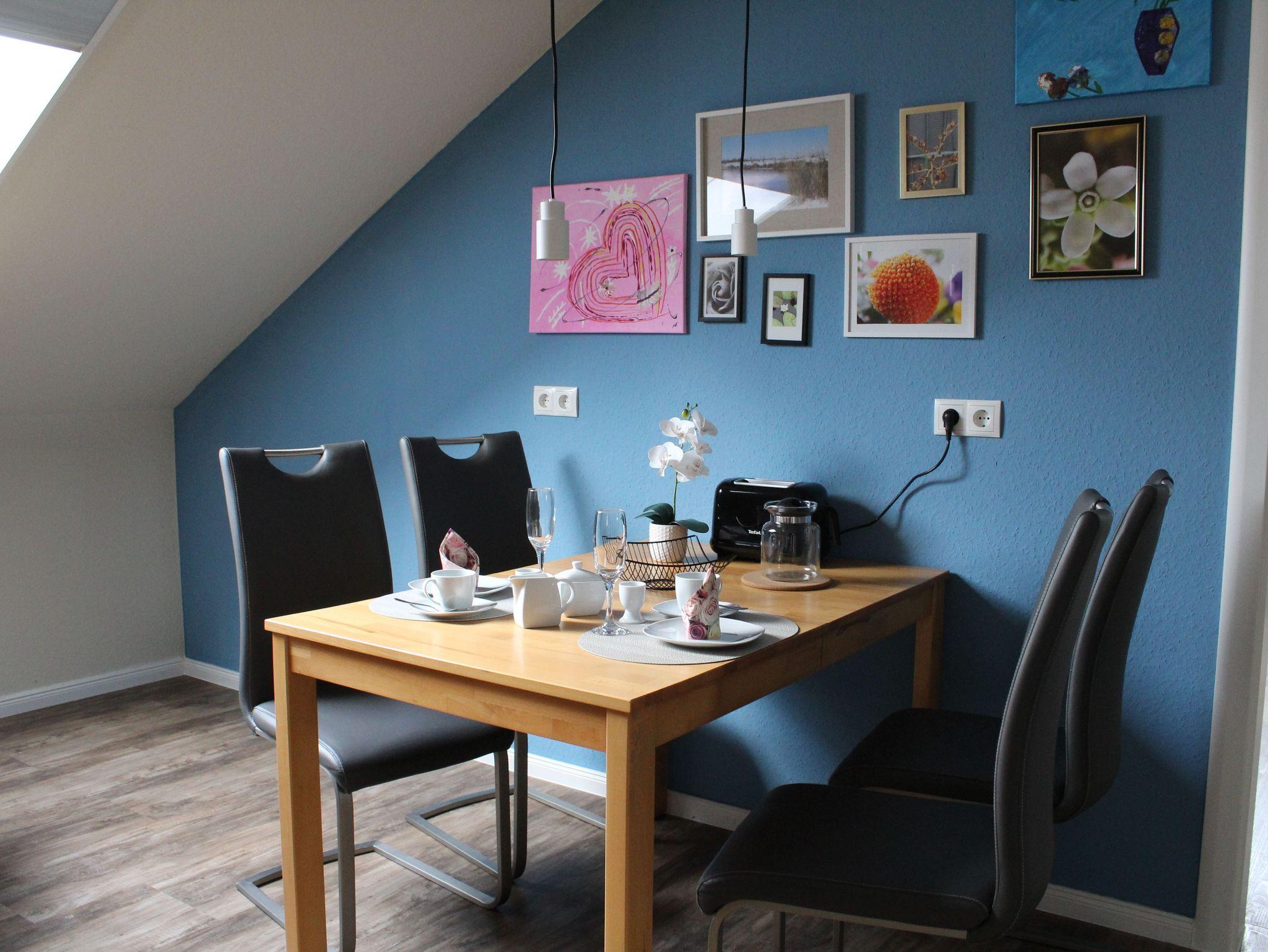 Die Ferienwohnung liegt in einem ruhigen Wohngebiet in der Nähe der Stadt Papenburg. Sie befindet sich im Obergeschoss eines Einfamilienhauses und hat zwei Schlafzimmer, eine Wohnküche mit Essbereich und ein Bad.